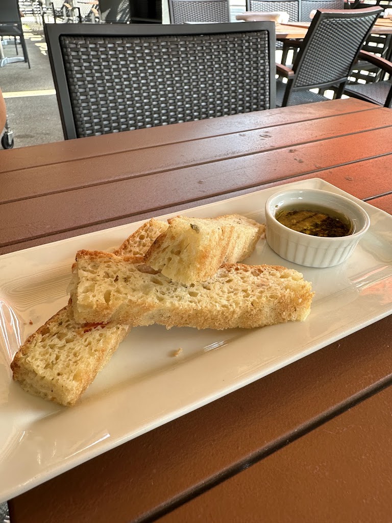 A beautiful patio and great service. But the food is hit and miss. Love the calamari and pastas. But the salads are overdressed handfuls of boxed lettuce. Also, the pizza crust is flavourless, cracker-like, seemingly devoid of yeast, and costs $21. Oakville Pizzeria on Kerr needs to intervene. On the plus side, a litre of wine is only $50. TL;DR: prime location, great service, overpriced food.