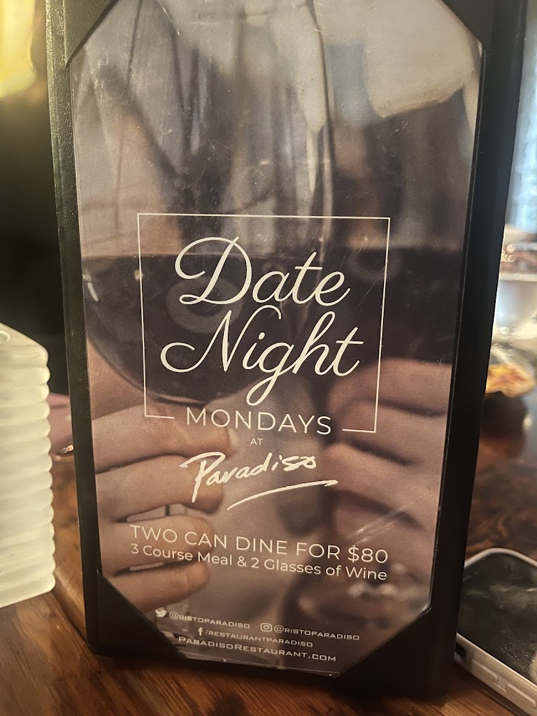 Paradiso is an exceptional dining experience that truly stands out. From the moment you walk in, you’re greeted with a warm, sophisticated ambiance that sets the perfect mood for a great meal. We’ll be back and drinks were amazing mostly this strong and fresh chocolate martini