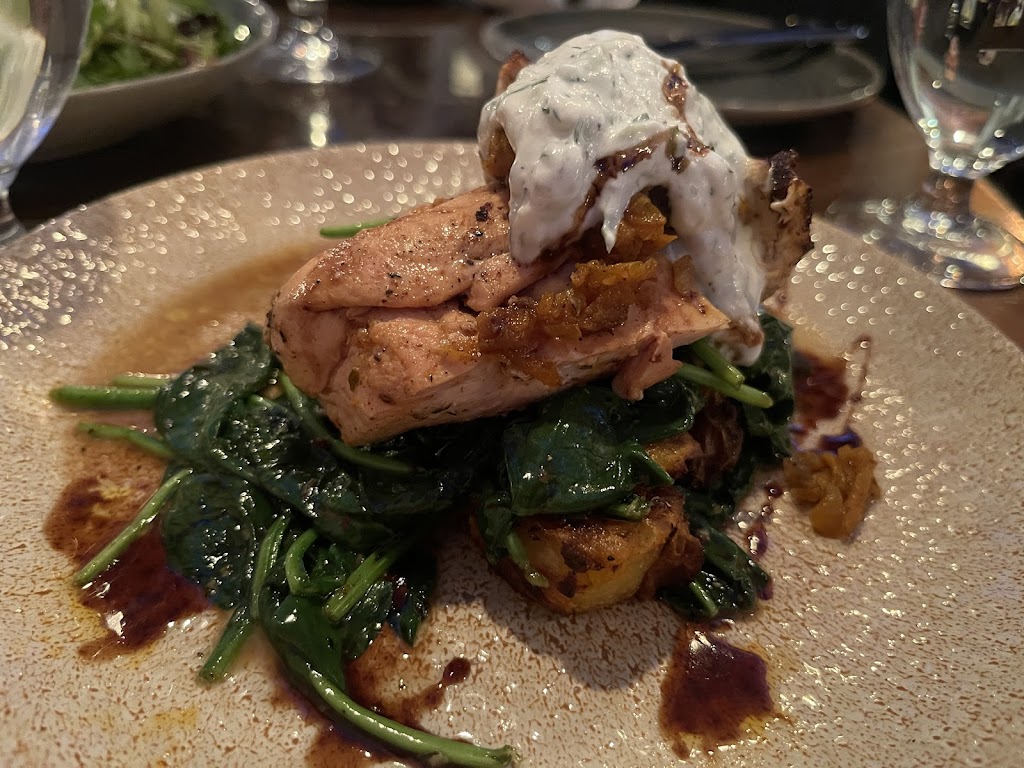 The place was nice but there were a few things, The parking in that area was a bit challenging and the food wasnt great. I ordered the Moroccan salmon which was undercooked and my friends ordered the gnocchi which we assumed from the description was going to be a cream base but came out pretty dry. Service was lovely and the restaurant itself was nice but the food couldve been much better.