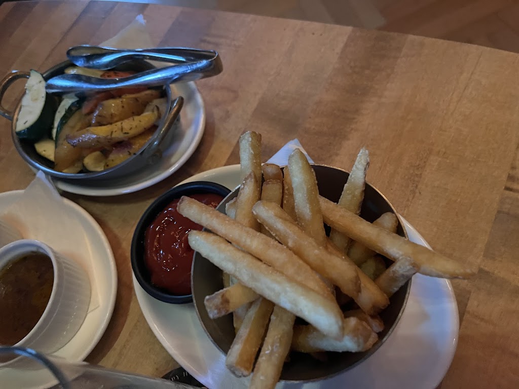 Busy Friday night and fell through cracks for about 10 mins to get our drink order. Server was super apologetic. 5 mins later Braydon comes by to again say sorry and offer an app. Not first time here and always great food and amazing service. Steak bites, wedge salads favs. Kids get some great veggies and fruit with their meals. Kid-friendliness: Kids meals are great and have some fruit and veggies that come with it