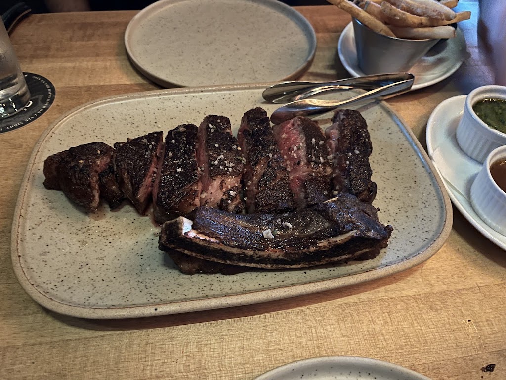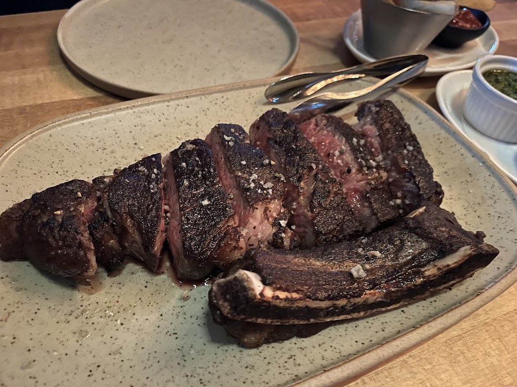 Almost amazing. The quality of our food was great but all of our side dishes and most of our main dishes were warm at best. I was with a group of 6, one of our steaks was over-cooked and each of us found the baked potatoes and side veggies were barely warm. I shared the Bone-in 32 oz rib-eye and it was melt in your mouth amazing but again..a little cold. The wait staff and management were absolutely amazing and brought the whole table free deserts and re-cooked the one steak that was overdone (but the sides were still not very warm). Apparently there was a problem in the back with the heating (as-in the heating wasnt working, everyone in the kitchen was freezing) so I imagine that may have been the problem. We still really enjoyed our experience and will probably go back because if our food had been served hot it would have been 5/5. Other than the 32oz rib-eye the standout for me was the crispy brussel sprouts in brown sugar. Very tasty.