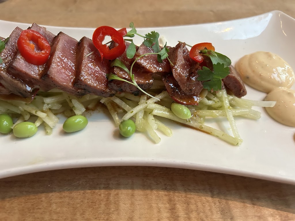 The service was nothing short of spectacular! We were served by Monique and she was attentive and knowledgeable on the menu items. Food was fantastic, but we have found that we need to order steak a level “below” our desired level of cooking ie we usually prefer medium-rare steaks, but find that we need to order our steaks rare to get it close to what we would like. The starter tuna tataki was delicious! Great atmosphere and fantastic service - thank you!