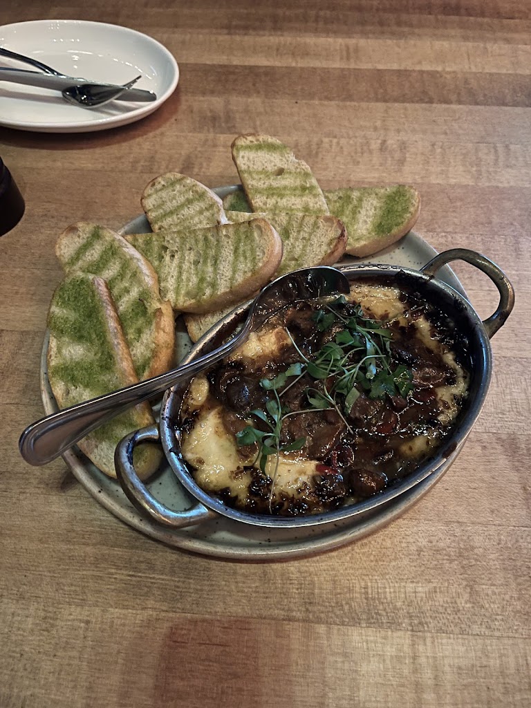 Monique was a wonderful server. And thanks to Tim for the complimentary wild mushroom and goat cheese dip!! They were awesome Vegetarian options: Burger