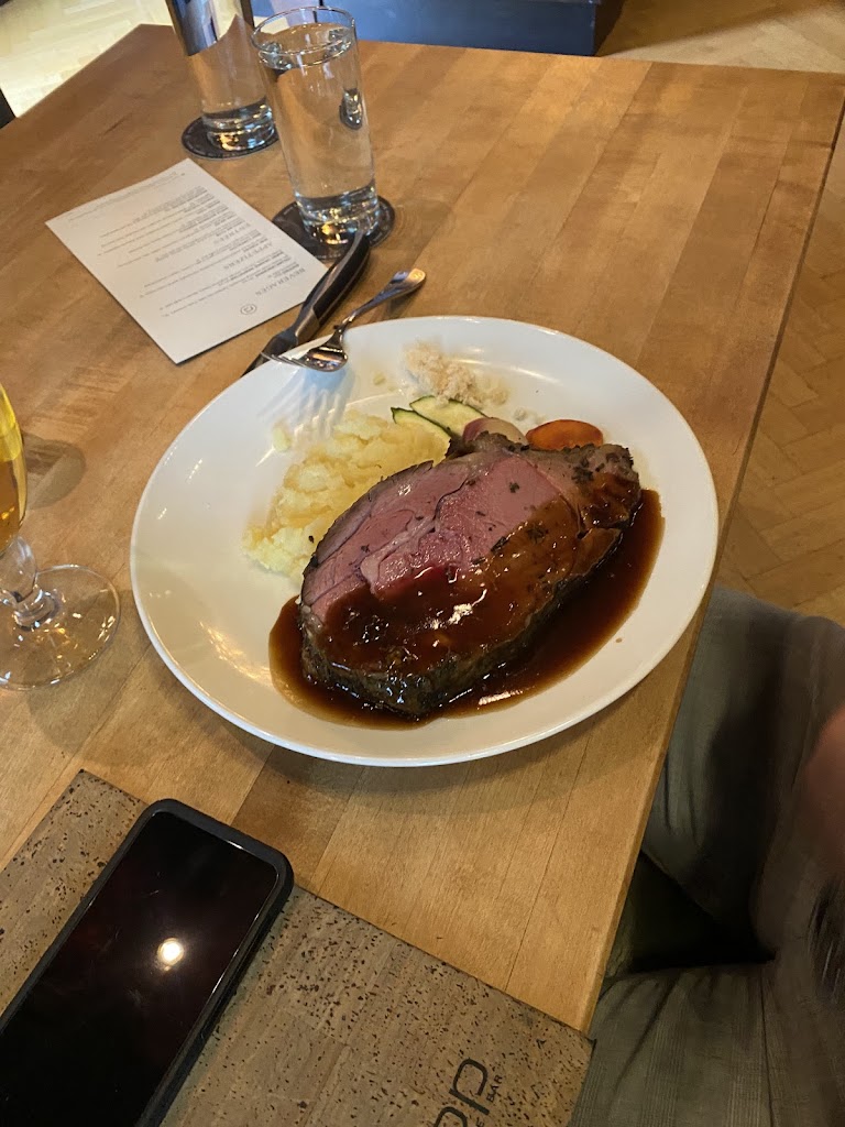 The food exceeded expectations. We stated off with French onion soup which was okay but the steaks were so good that they made up for everything! The price is also quite reasonable. Slow cooked prime rib was fantastic and so was the rib eye. The baked potato on the side is also good. I would skip the soup.