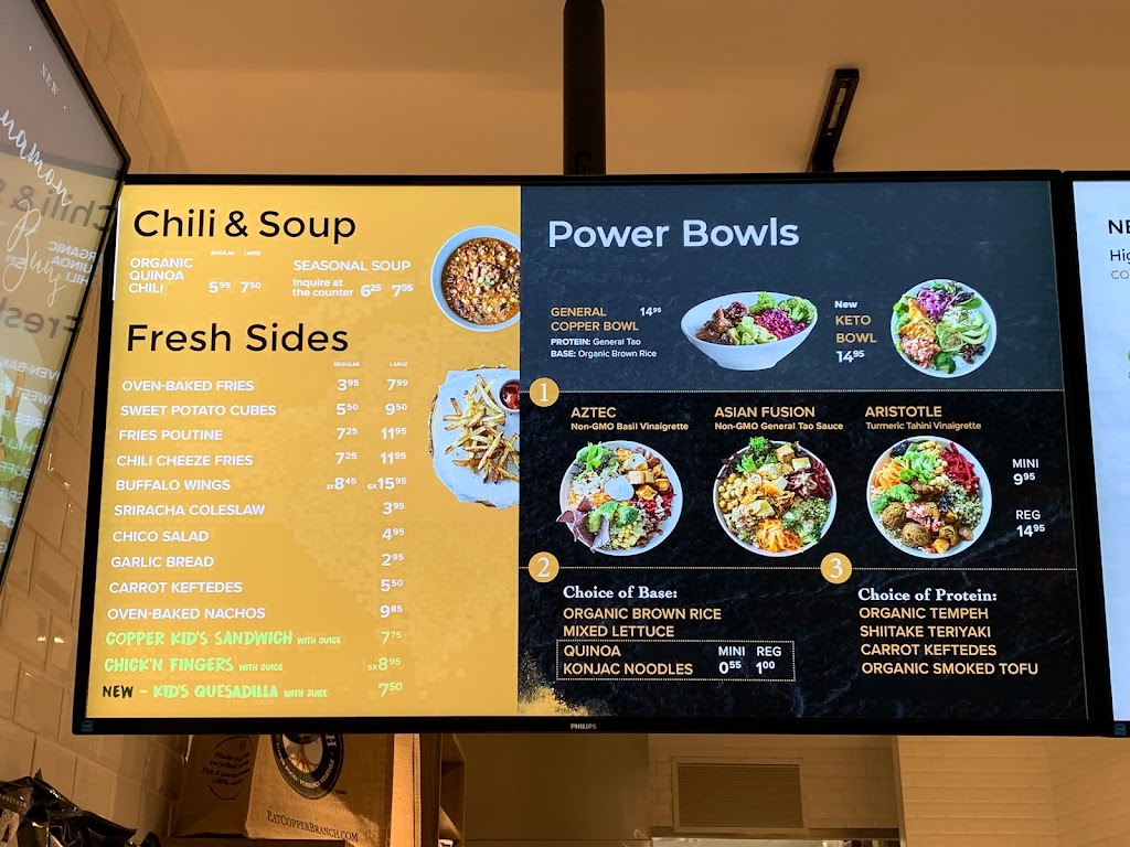 I have had the pleasure of having this location near my work. What a treat! Non GMO and quality real food made into quality fast food style. Copper Branch is a true rare gem!! With desiccated food being thrown at us everywhere, including our food markets that should be stocked with nature derived food, they lead the way back to wholesome while on stage with fast food! And the service you cannot beat, always a joyful experience!!