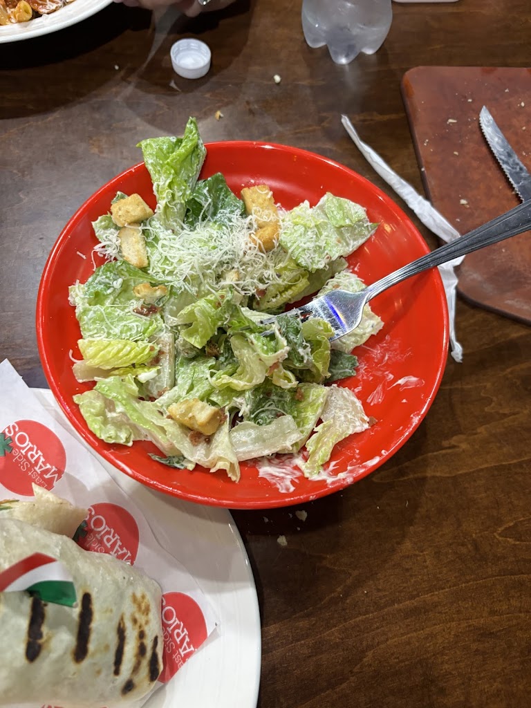 Food was delicious. Service was brutal. Extremely slow to receive everything. Salad was even brought after the meal. Unlimited bread was never once refilled. We had to track down the waiter to get our bill. The restaurant is also super run down. Bathrooms were disgusting. I think they must have been understaffed for lunch today, but we had a very poor experience and will not be back.