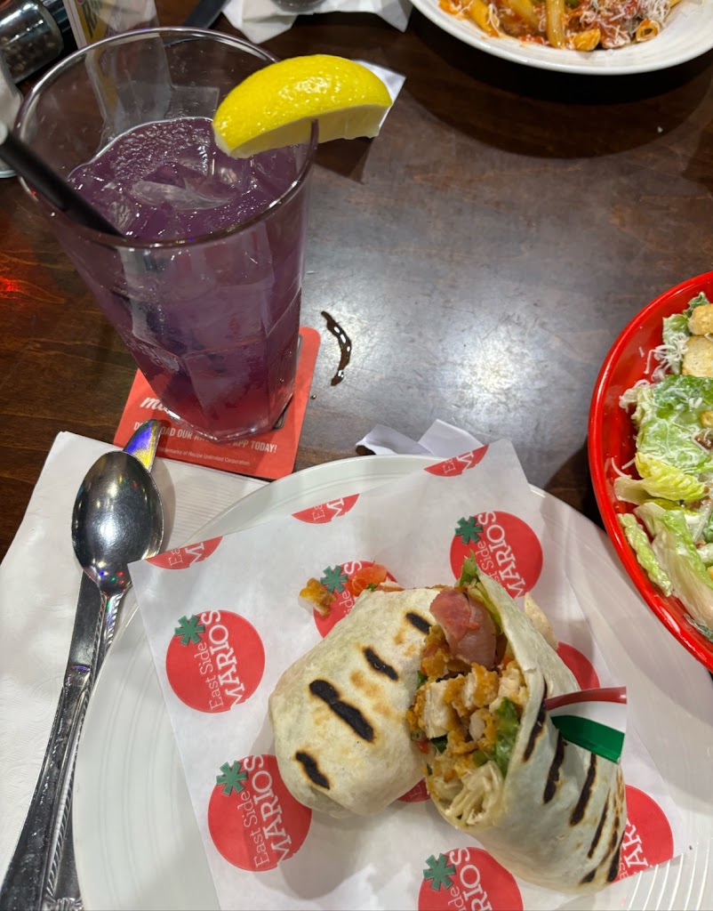 My family and I visited today for the first time. As you enter you're greeted by the hostess and have to wait to be seated. The staff is friendly and accommodating. We were seated and were given the food and drink and drink menus by our server. There are very limited brands of water they offer which isn't great. My mother got the aqua brand water since sparkling water was expensive. I tried their violet lemonade and it was one of the best lemonade I've ever had. Delicious and fresh. We all made a decision on what we would order and food took long. We received our appetizers which were garlic bread and butter and gnocchi with garlic and tomato sauce and it was all alright. We noticed that there was only one chef at the time making all the food. Eventually, our food arrived and I ordered the crispy chicken wrap. The wrap came with a side so I chose Caesar salad and it was good. My family wasn't impressed with the taste and service today. Overall the restaurant is pretty standard and again staff was friendly. I wouldn't recommend this place to try Italian food however their drinks are so good. Their violet lemonade is a flavour is a sensation.