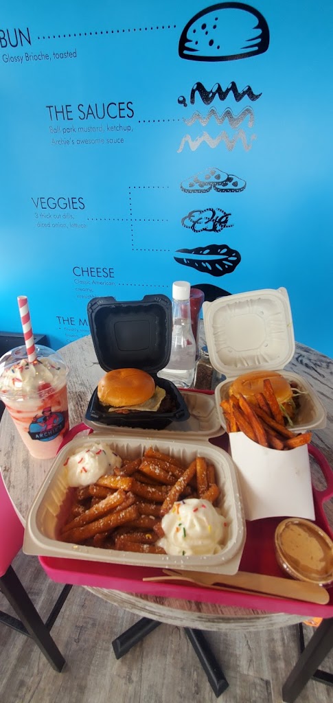 Archie s Smash Burgers Crisp edges, fresh beef, melting cheese drips in delight potato bun hugs. Shakes to End the Meal Cold, creamy, rich swirls, Scratch Ice Cream blends perfection, smooth as old vinyl. Nostalgia Served Here Diner stools, pinball, PBR onions, cheese flow a two-napkin joy.