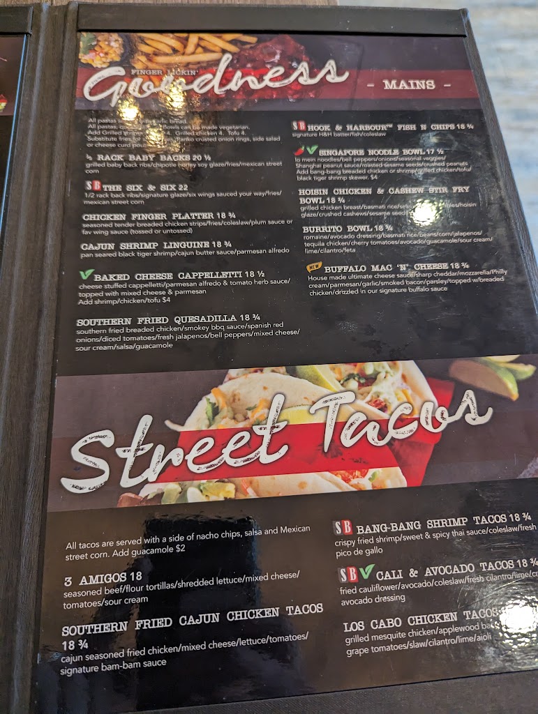 Vegetarian options: Lots of options. Chef will adjust as well. Dietary restrictions: Just let them know allergies etc they will adjust for you. Parking: Its very tight if youre driving a large vehicle or truck. Better to pay and park across the street Kid-friendliness: Its a sports bar ish atmosphere. Kid friendly in day but not recommended. Wheelchair accessibility: Stairs and a ramp available. High top tables a slight hinderance.