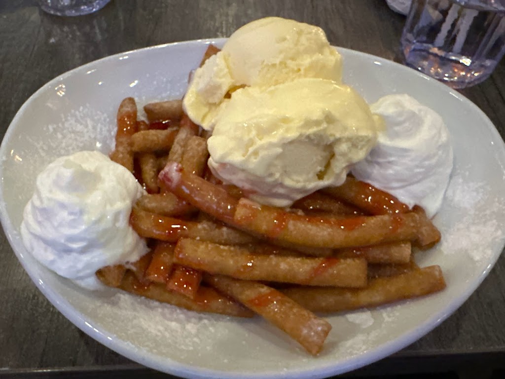 Nice restaurant close to the lake! Patio is pleasant and lively! When we visited over the summer, the portions were large, and the salads were full of toppings and dressing! Very yummy. Our server was kind and genuine.