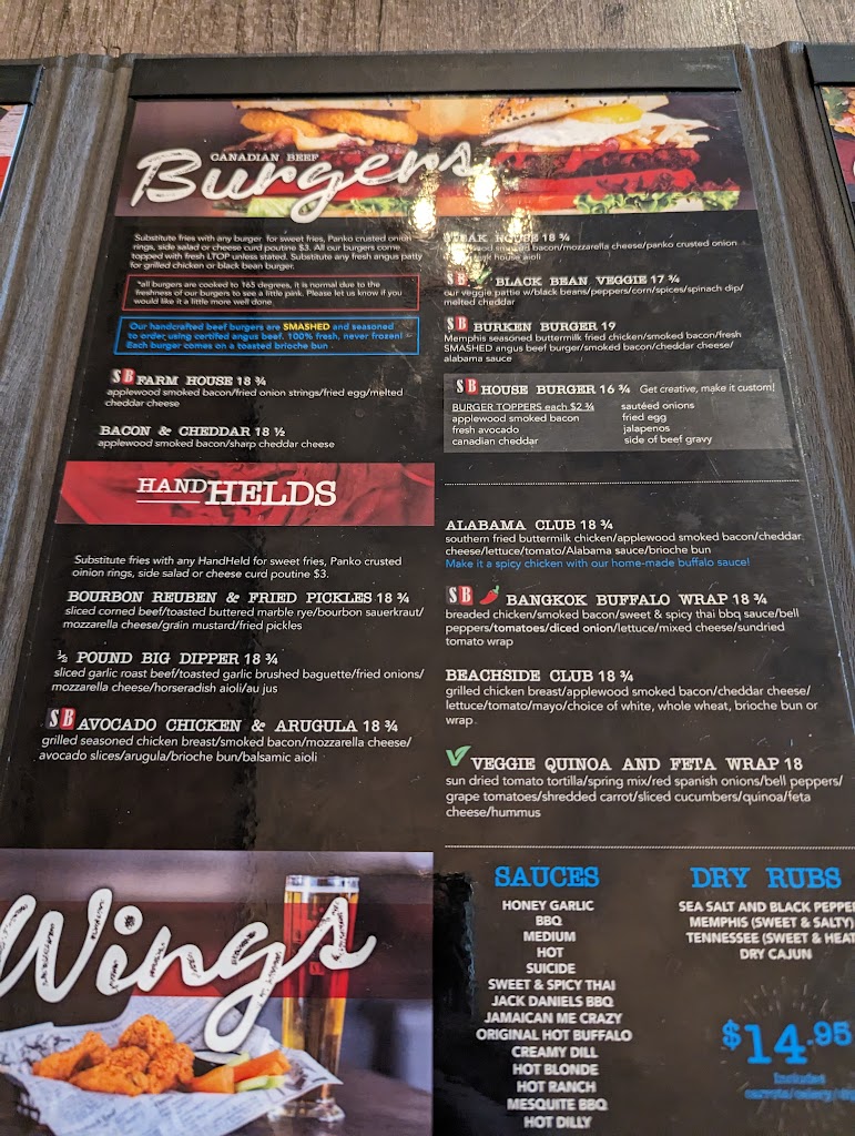Super fun place to go with friends or your family. Wings are awesome, burgers tasty and service is always great! Definitely recommend, especially in the summer out on the patio! Vegetarian options: Lots of vegetarian options Not many vegan options Kid-friendliness: Kids menu and highchairs available