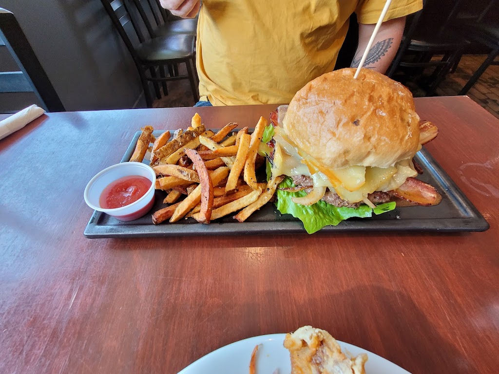 Had a great dinner on the patio with some local craft beer! I had a burger which was delicious, if a bit messy. Our server was very attentive and friendly and the patio was very comfortable