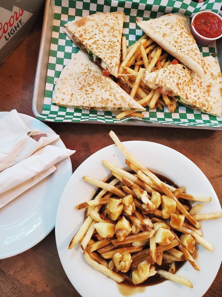 The prices are great for the quantity and the location. I found my poutine was a bit salty. The quesadilla was nice and cheesy. The service was friendly. They have a big patio so it would be a good place to go on a nice summer day.