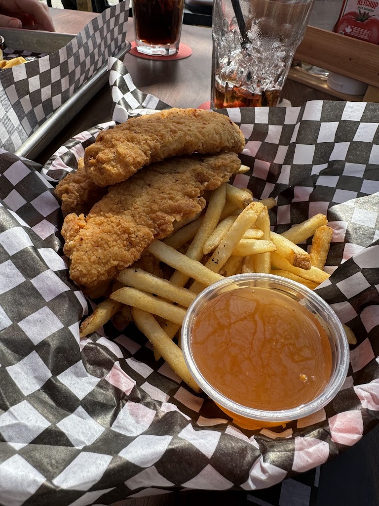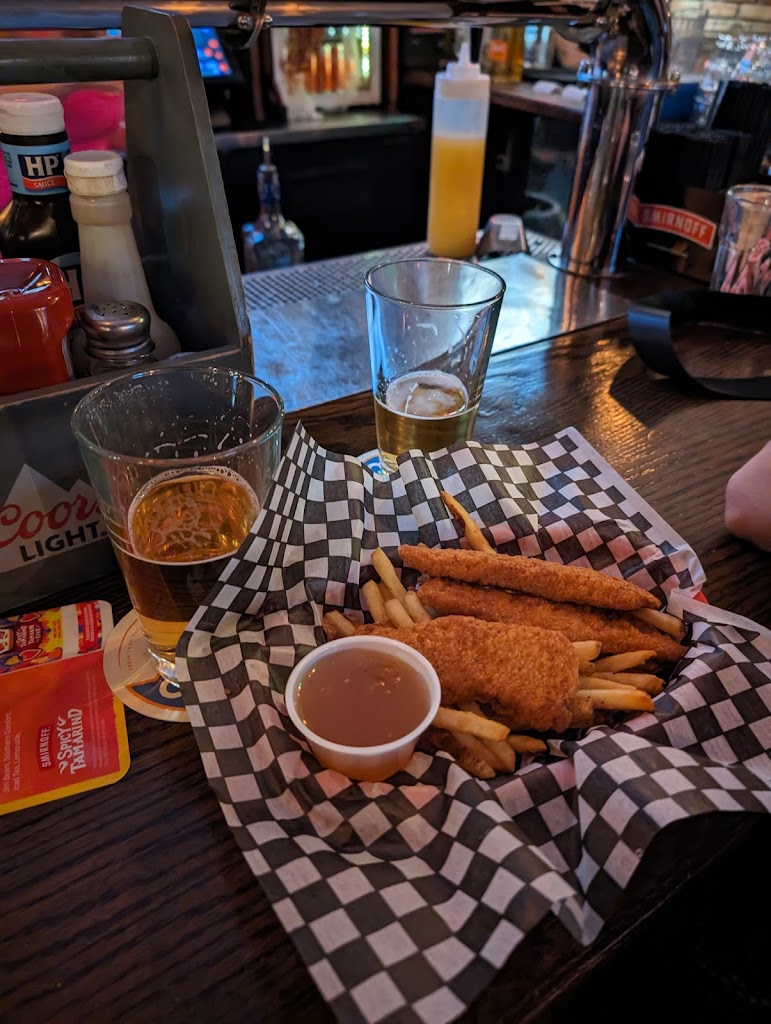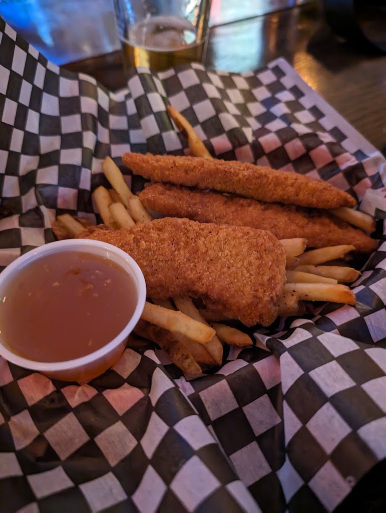 I wouldn t buy food here again. Chicken fingers tasted like they were bought in bulk from Walmarts frozen food aisle. BUT as a bar this place is great. Drinks are decently priced and the atmosphere is really great. Karaoke nights are always fun. Update: I m doubling down on saying don t order food here, I tried the pulled pork and it tasted sour and made me sick. HOWEVER I am also doubling down on saying this place is so fun and their drinks are so good and inexpensive! The just peachy and caeser 101 keep bringing me back . Almost every time I go I have the same server, I don t recall her name but she s got cool pink/purple hair and she s fantastic, so helpful and attentive.