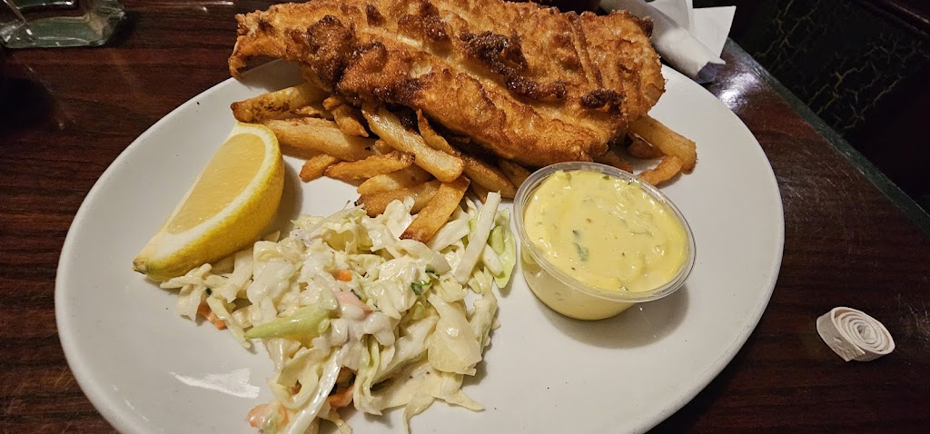Real British-style fishnchips, good salads, a dozen varieties of beer/ale/... on tap. The elevated restaurant section is quiet & cosy, and we got excellent service. A great place to visit for a noon get-together!