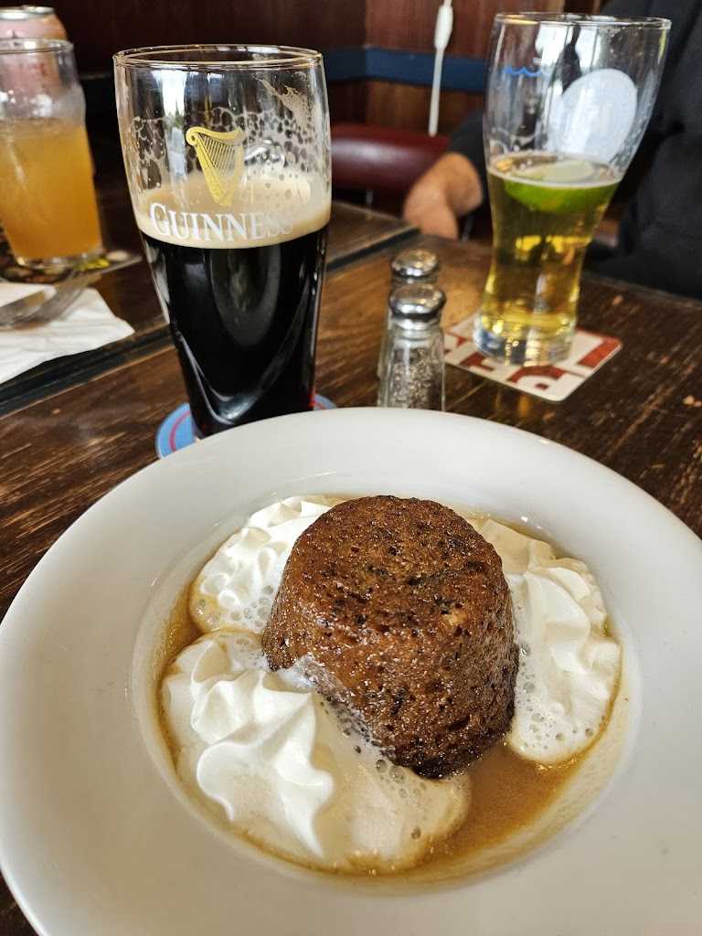 Close to the airport so you can grab a friend on a long layover and have a pint of Guinness and sticky toffee pudding and be joyous. Great vibes, atmosphere, and service.