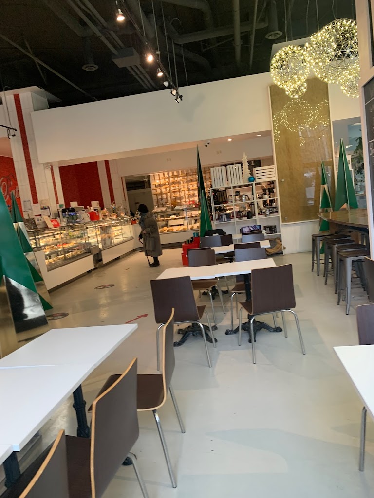The place looks like a high school cafeteria, no cozy café vibes to be seen anywhere. The boulangerie side had like 4 items and the food side has a bunch of ready made sandwiches, non of which look appetizing. I took small plate of potato salad (that tasted like the generic stuff you can get anywhere) and some kind of latte drink that tastes ok but nothing amazing. This cost me 20$!!! Nothing impressive there and highly overpriced.