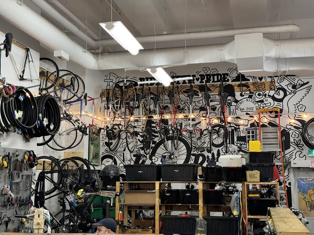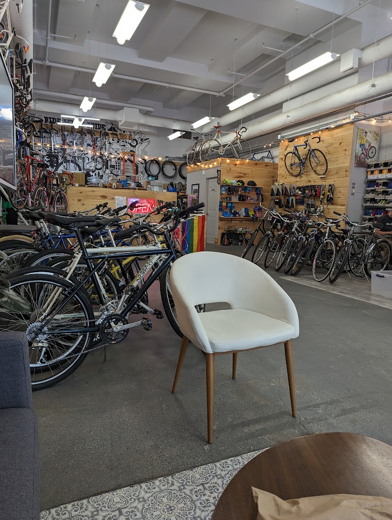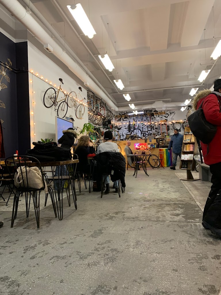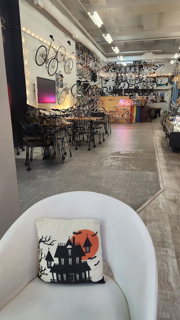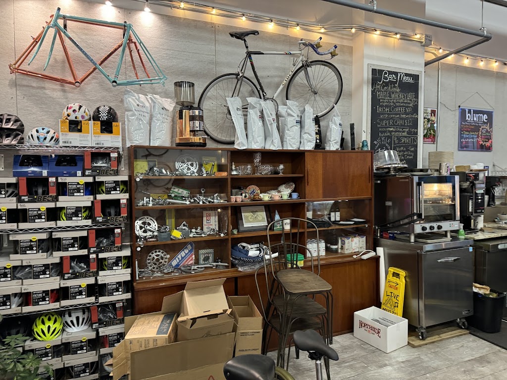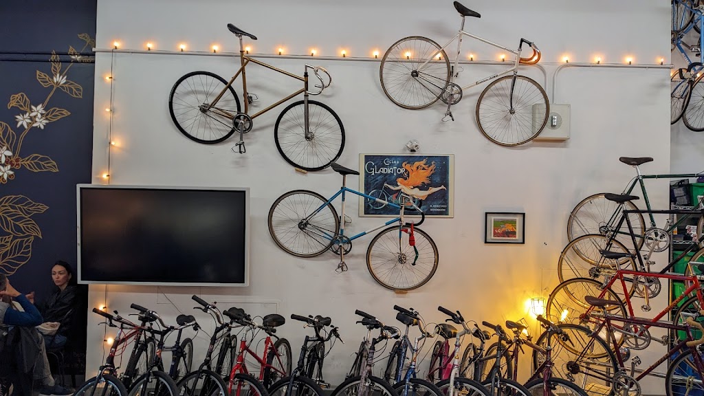 The owners have created a really neat atmosphere in the new space. The bike shop is clean and the retro bikes hanging from the walls make for interesting decor. The coffee is great too!