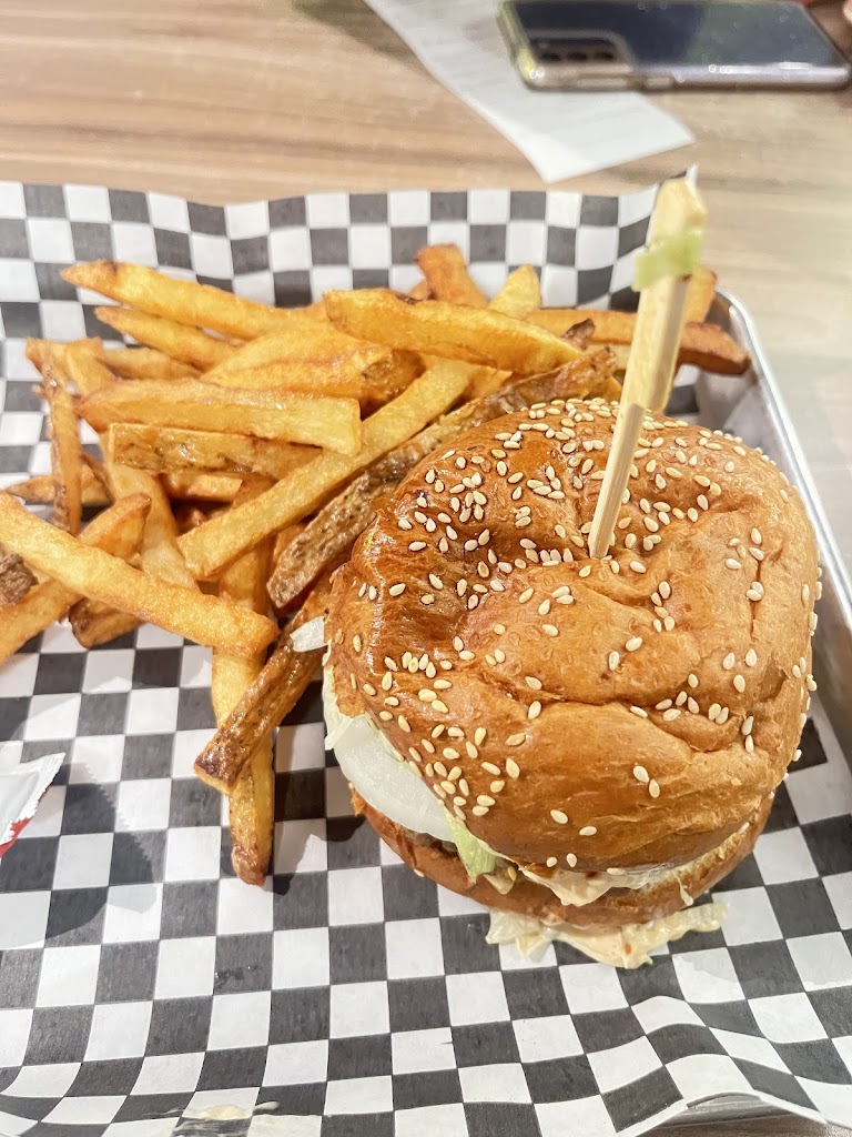 The burger was very tasty. I normally get 1 patty burgers but this time I got 2 patties and it was not super heavy which was refreshing. Only suggestion to make is to clean the tables and booths between customers will just add a touch of cleanliness that is good to see in a food establishment. Kid-friendliness: Went with kids and it was fine regarding portions and space