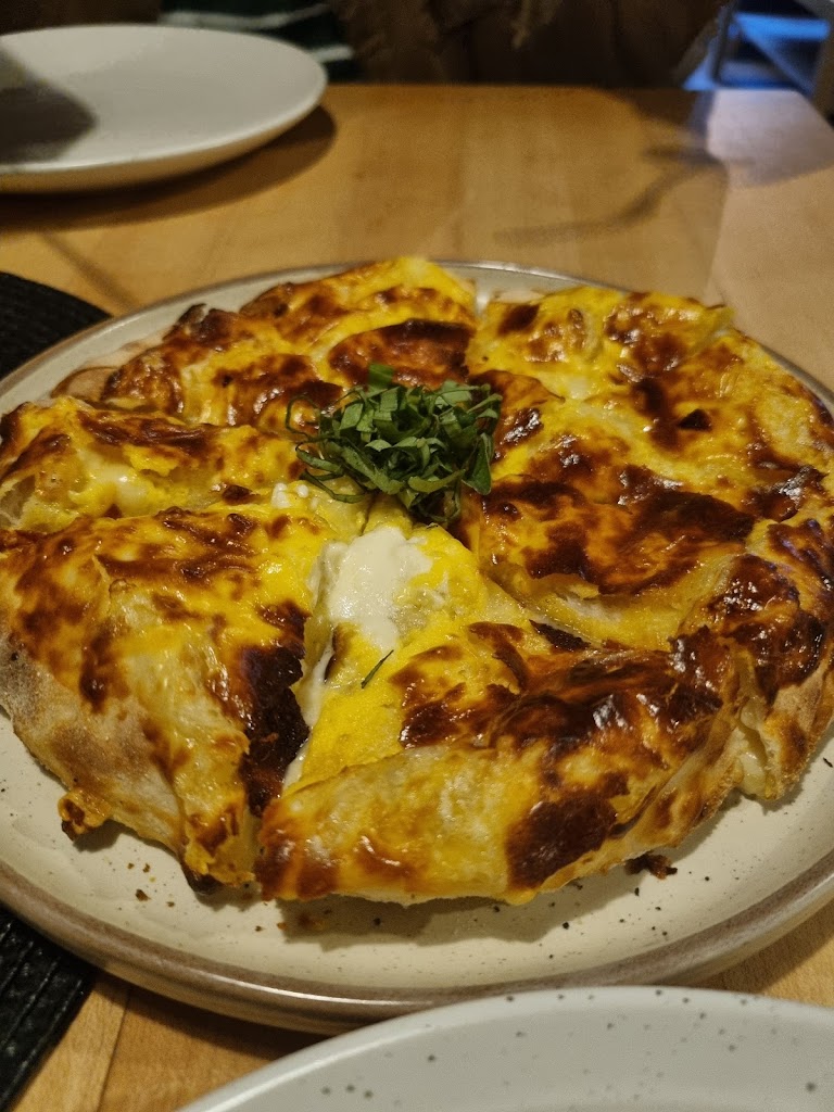 To start we had the Khachapurri- cheese bread. A meal on its own and worthy of a visit just for this dish. Wonderful wood over taste. For our mains we had the Ladenia Pizza with added Bacon and the Carbonarra Double Smoked Bacon. The pizza crust was super thin and the pizza was almost delicate. Both mains were excellent although the Carbonarra was very rich and quite heavy. Service by Matteo was attentive without being intrusive. Dietary restrictions: Although our party did not have any restriction, we are aware because we often have family with us who have restriction. Many vegetarian and gluten free options available.
