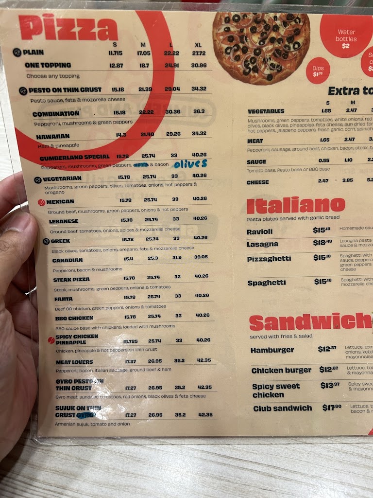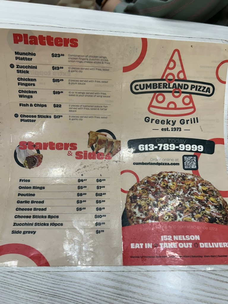 There are too many pizza joints out there but Cumberland pizza stand above all, cleanliness, quality, taste and service. Try it to believe it.