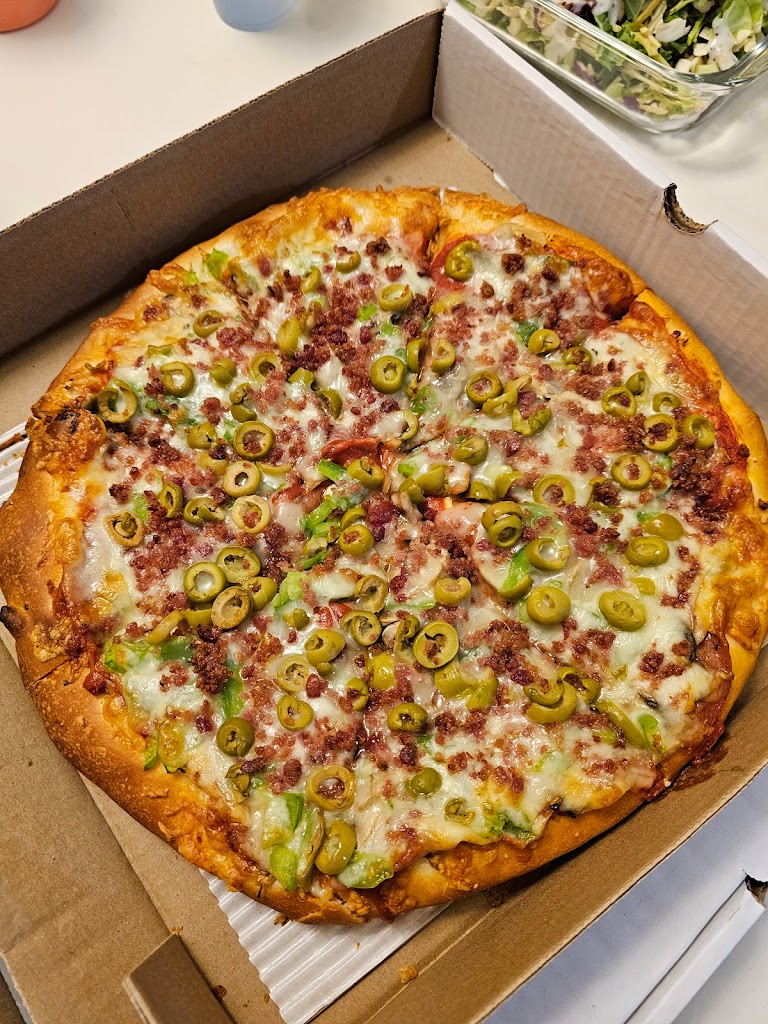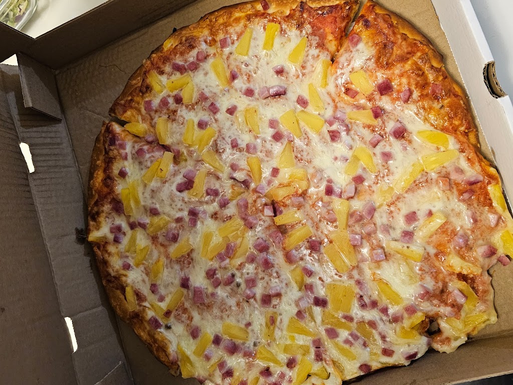 Awesome place. Walked in to the smell of fresh pizza being made. Clean dining area. Ordered an extra large Combination Pizza and it only took about 20 minutes. The staff which I assume are the owners were very friendly. Onto the pizza. So tasty! Lots of cheese and most importantly a delicious sauce. Will definitely order from here again!