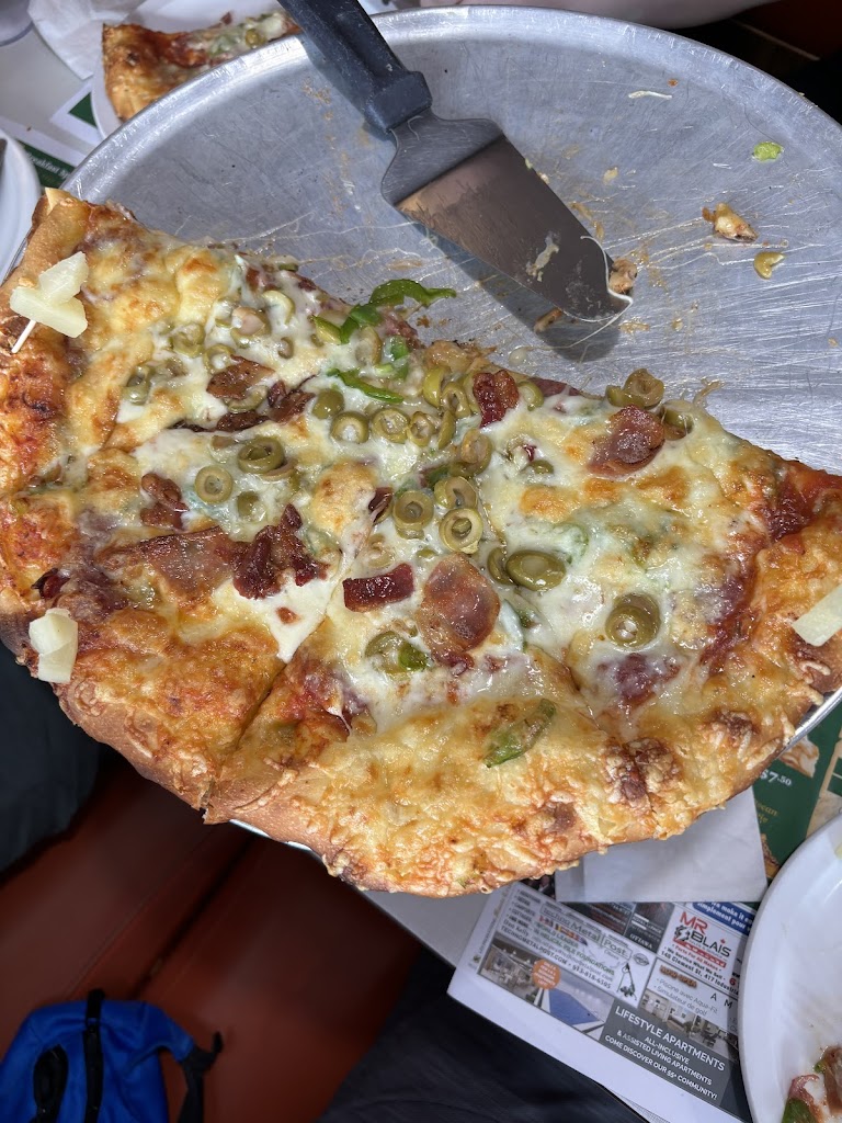 Wow, absolutely Wow. Best pizza Ive had. They are very generous with their toppings so you will need a fork and knife to eat it fresh. The garlic sauce was so good. I got a half veggie half cheese. Staff is amazing. Family owned, family entertainment. Great customer service. Did I mention the pizza was amazing? Sooooooo good