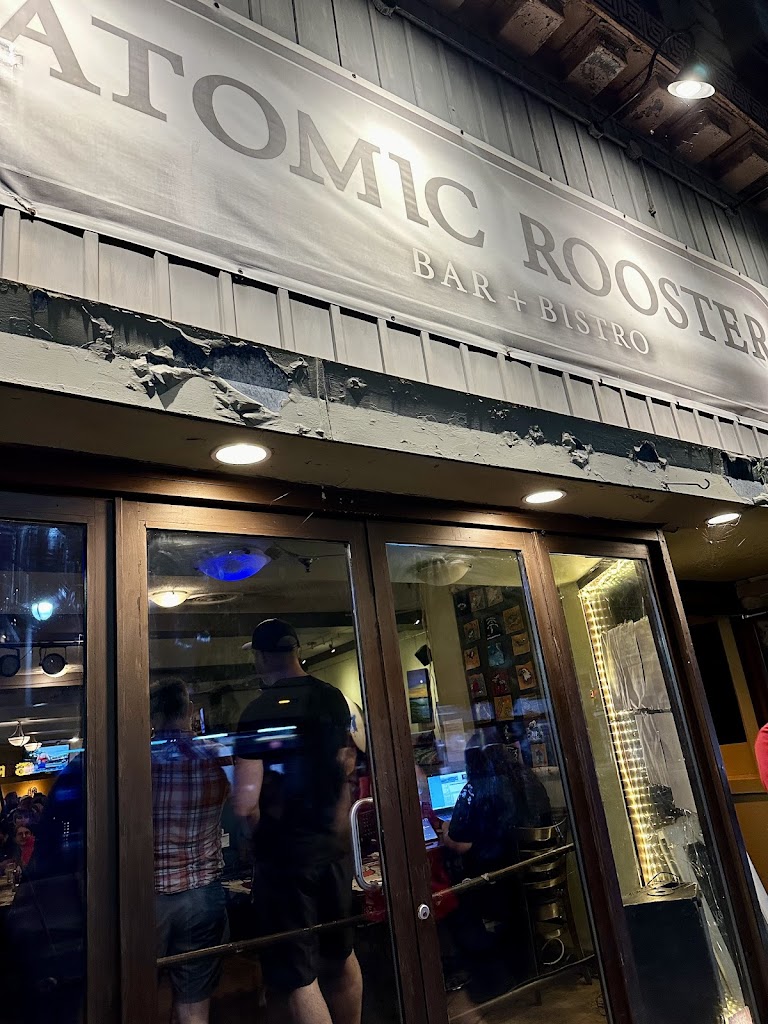 Our experience at Atomic Rooster, was terrible. We walked in on live music night - the music was so loud I was barely able to hear the people around me or the waiter. When we finally put in our order, the food came approximately 50 minutes later. The food was subpar. As we were wrapping up, we saw two cockroachs near the wall where we were sitting. We informed the waiter, and she killed one with her napkin, and the other with her hand. When asked if they see them here often, she replied no its the first time we saw them in that corner (which makes me think she has seen them elsewhere in that establishment). By that point, we were very disappointed and had to settle our bills and leave right away. I do not recommend this spot.