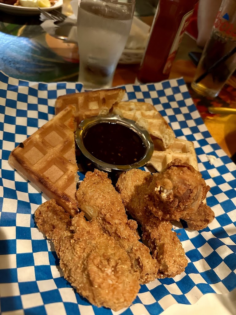 Great service, ok food, good portions, good pricing. We tried it on a Saturday night. It was karaoke night, and $15 chicken & waffles (don’t recommend it though). Tried the following: - chicken & waffles — no flavour - fish n chips — ok - jambalaya — ok - gumbo — ok The garlic bread that came with the jambalaya was amazing. I consider it a dive bar, but if you’re looking for well priced priced food and live entertainment this place is for you.