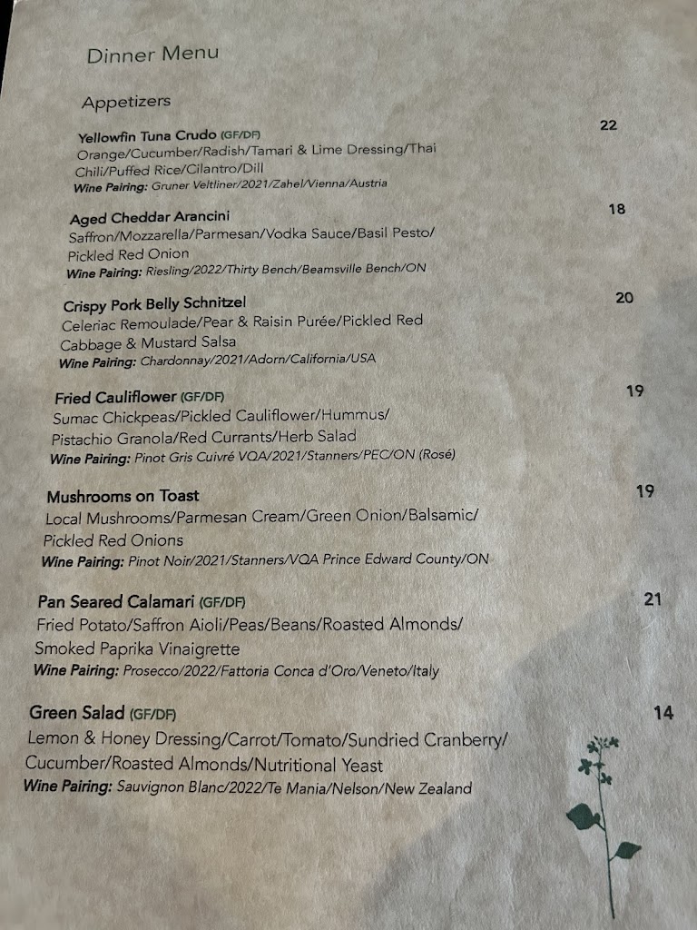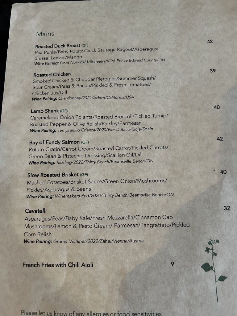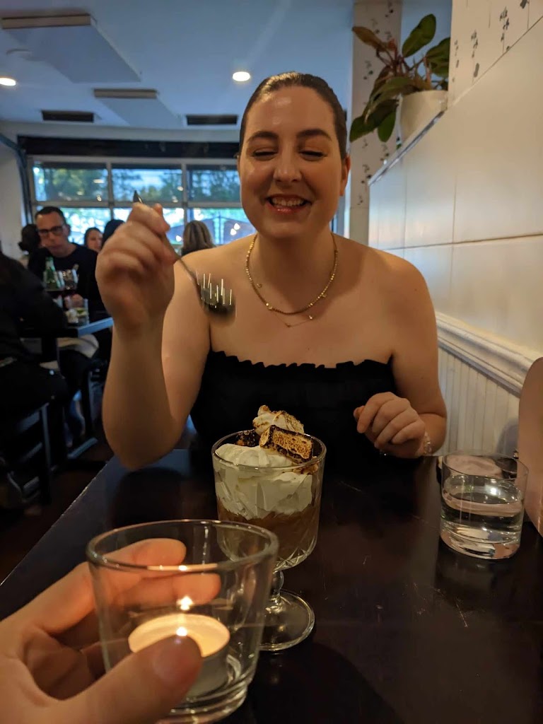 What an absolute gem! Went for the first time with a couple of friends for dinner. The space is very inviting and we sat at the window which I always appreciate. Has a casual feel, but the cuisine is definitely upscale! My friend ordered the chicken and pierogis & said it tasted as good as it looked! And she is Polish so she knows her pierogis! My other friend and I ordered a couple of apps to share, the arancini and the salmon. WOW WOW WOW!!! Presentation was incredible, wish I d pulled out my phone to capture, and the flavours! Absolutely incredible!!! I could have had a third app for sure but the 2 made a delectable light dinner Deserves all the exclamation points ok!!!! We had banoffee pie & carrot cake for dessert, delightful! Will definitely be coming back here, bravo Parking: On street so really depends on time of day and day of week as it can be a busy area.
