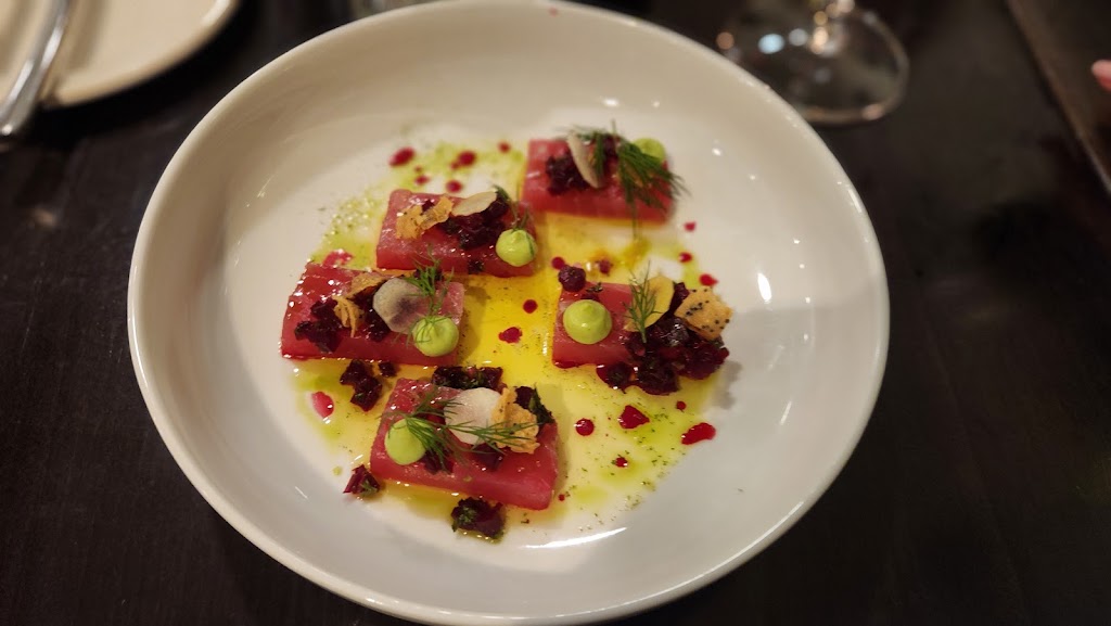 Food and service was excellent. We had the tuna crudo, mushrooms on toast, and banoffee pie. The pic is tuna crudo.