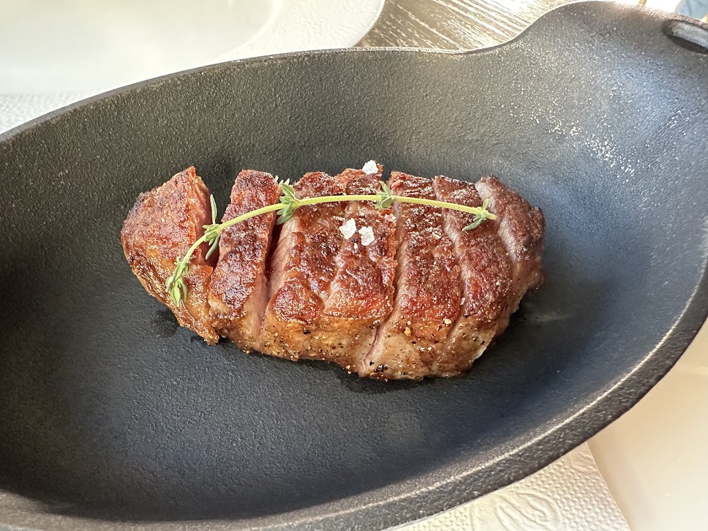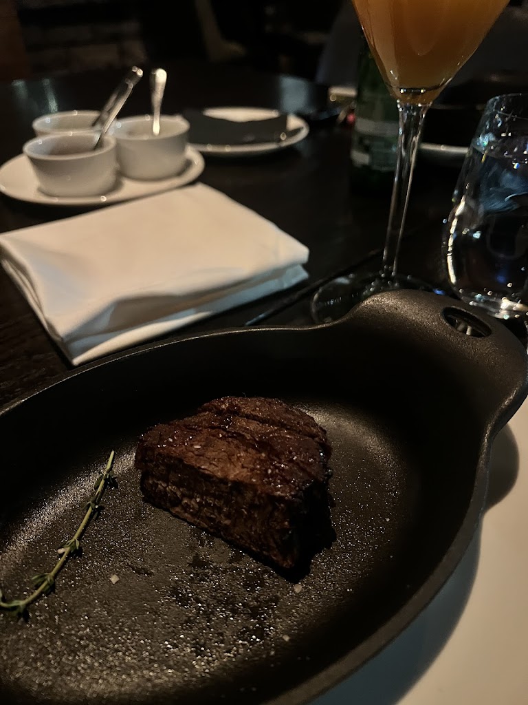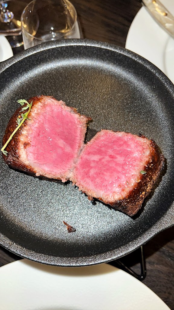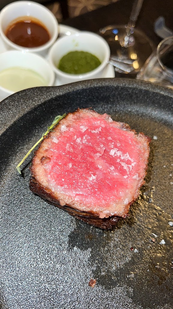 I will start with how impressed we were with the service here. We had a wonderful server named, Jesse/Jessie (sorry if I’m spelling it incorrectly) and he was an absolute delight. He really knows what’s he’s talking about when it comes to the different types and cuts of steaks, wines/beverages, and just about every single item on their menu. Love the atmosphere. Very chic and classy vibe to the place. Everything from presentation, portions, taste/flavours was excellent. Definitely on the higher end of fine dining, but still average for the types of steak cuts they have on their menu as compared to other restaurants offering the same. Our family of 5 all ordered different cuts of the Japanese Waygu and we cannot complain. The buttery softness, melt in your mouth texture - you just can’t beat. They offered us these delicious take homes that we heated in the oven for 3 minutes and wow, the perfect pastry to go with your morning tea/coffee. We will definitely be returning and recommending friends and family to this restaurant.