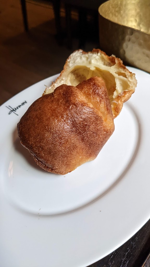 I booked Harmons for the weekend after Valentines day in 2023 and was greatly disappointed with the food especially given the pricing. I was expecting familiar appetisers to be elevated in some way to explain the pricing but unfortunately our burrata starter was pretty basic. Around $50 for a lump of burrata with a glug of olive oil over it and some toasted sandwich bread. Our server was attentive and throughout the dinner although I didn t appreciate when they corrected my dates preferred level of doneness for her steak. Although it is true certain cuts are ideally served rarer, if someone says they d like it cooked further it s obviously personal preference and insisting otherwise comes off as really pretentious. When our steaks arrived, my dates was way rarer than the medium-rare she had been pressured into ordering, borderline rare/blue in my opinion and given the initial pressure to order properly she felt awkward returning it. My ribeye was presented and sliced beautifully but was under seasoned and tougher than anticipated. We ended up switching meals because despite me being the one ordering the rarer steak mine was far more cooked than my dates. The Brussels sprout sides were nice initially but way over-salted meaning the majority went uneaten. The dining area and ambience was undeniably lovely and it s a great venue for a romantic dinner. We appreciated that a member of staff took the time to check in with us on whether we were enjoying our meal but it was a somewhat awkward interaction with a few minutes of them lingering and glancing towards our tables and a sudden rushed question whilst we both had our mouths full. I must admit due a bit to the awkwardness we didn t raise these issues at the time and so the staff didn t really have an opportunity to rectify it in the moment which is on me. Overall I don t feel Harmons is worth it s price tag currently, lovely setting but the food needs some work. I did really enjoy the Yorkshire pudding style bread they made in house though.