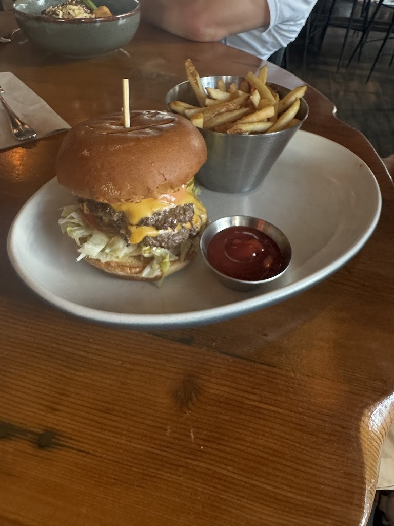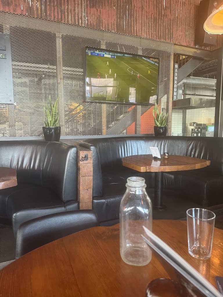 Chill bar atmosphere with lots of space and seemingly endless TVs to watch what ever games are going on! Burger (4.2/5) -great flavor on the patty and was cooker perfect -good bun but way too much sauce which poured out onto my plate as I ate