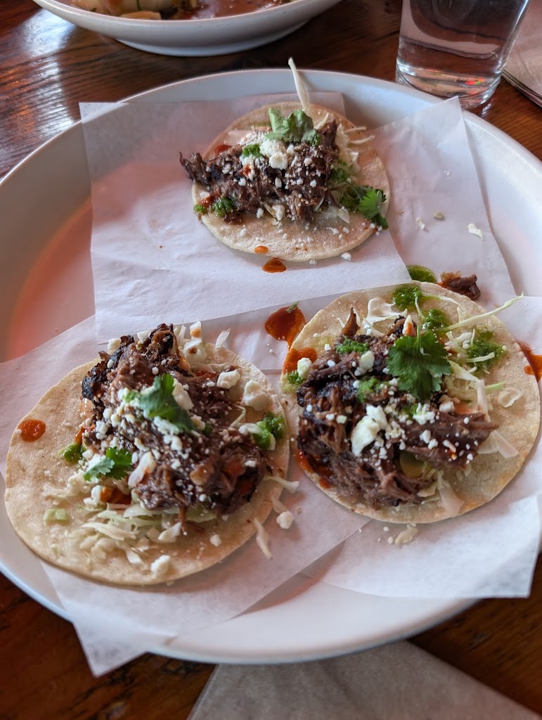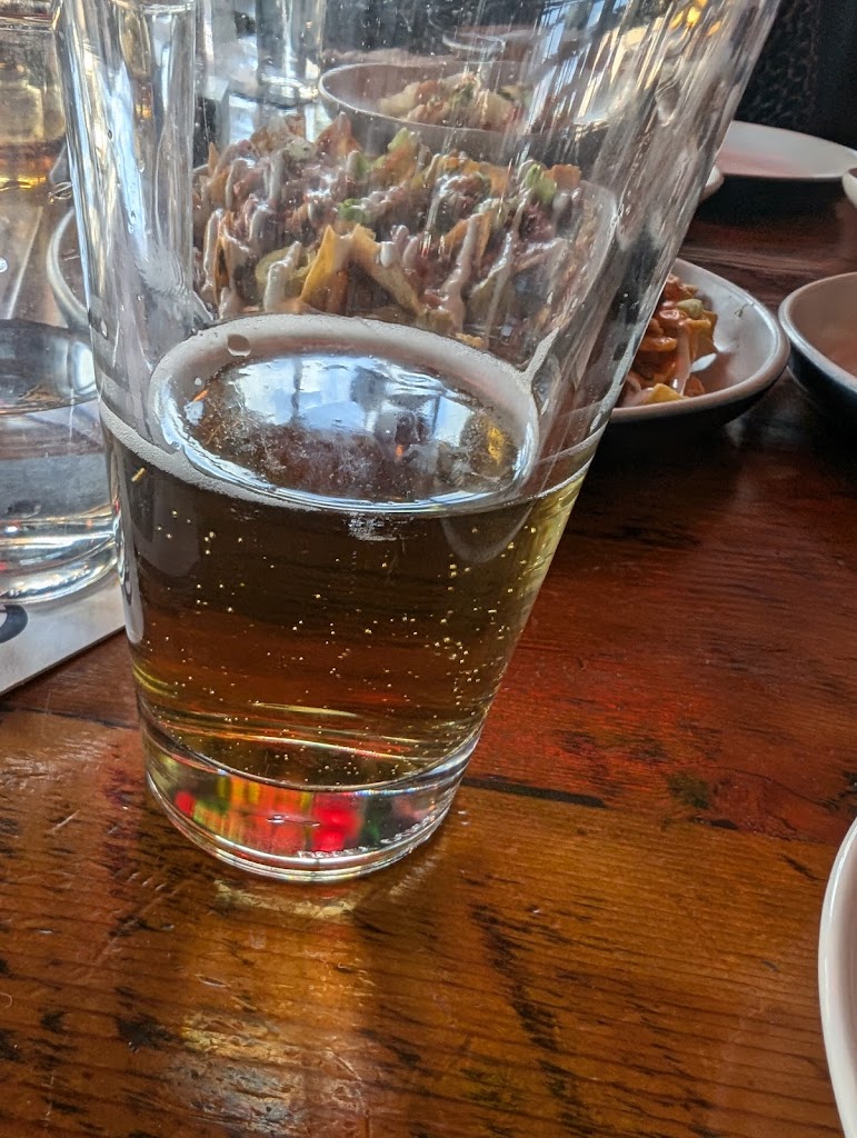 This was my first time here. Came here for a quick happy hour drink and snack. Amazing food and even better service. Loving the vibe in here. House Lager and Pinche Beef Tacos. How do i give a sixth star??:) Food : 5/5