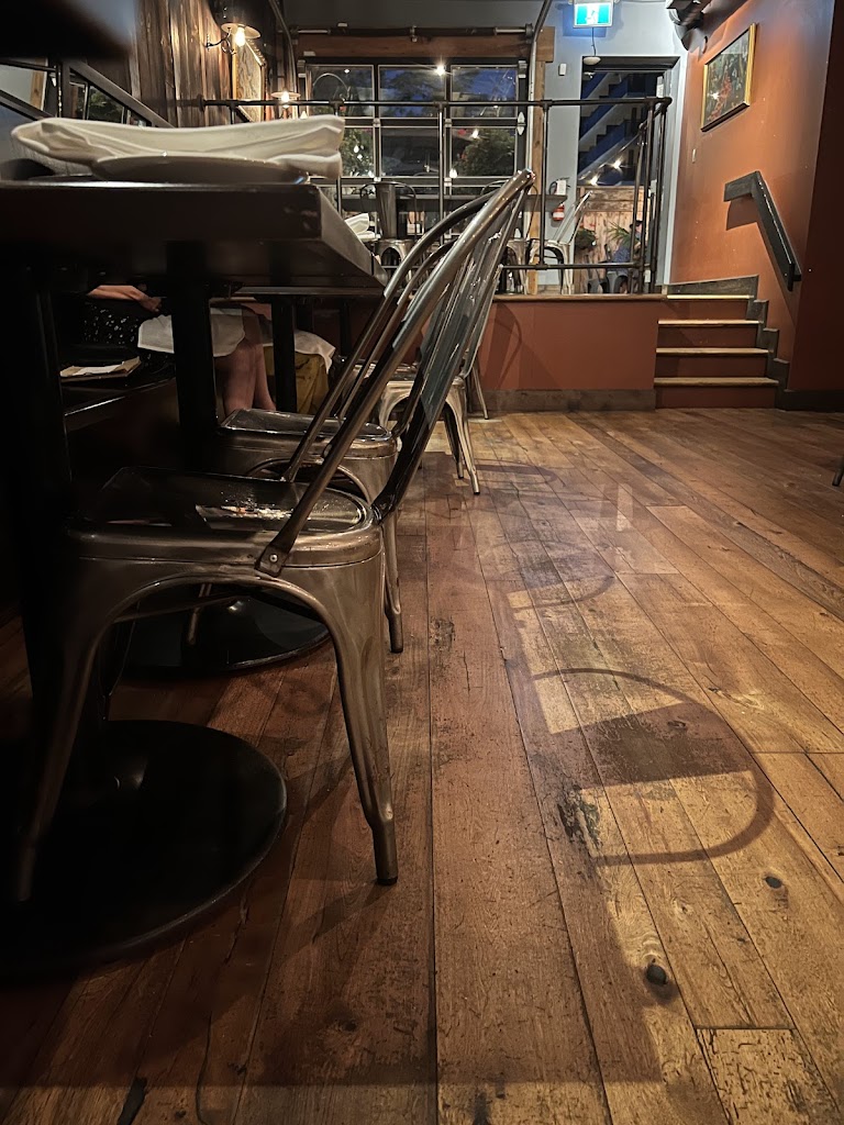 I rarely leave a review, unless very impressed or disappointed. This one, unfortunately, is the latter. Whalesbone was recommended to us for date night. The hard steel chairs are not comfortable or welcoming at all. The HVAC blows volumes of cold air. Our server spilled a drink on my seat and our table and I had to get paper from the washroom to clean it myself. Our meals were enjoyable, but atmosphere is key for me and did not meet the mark.