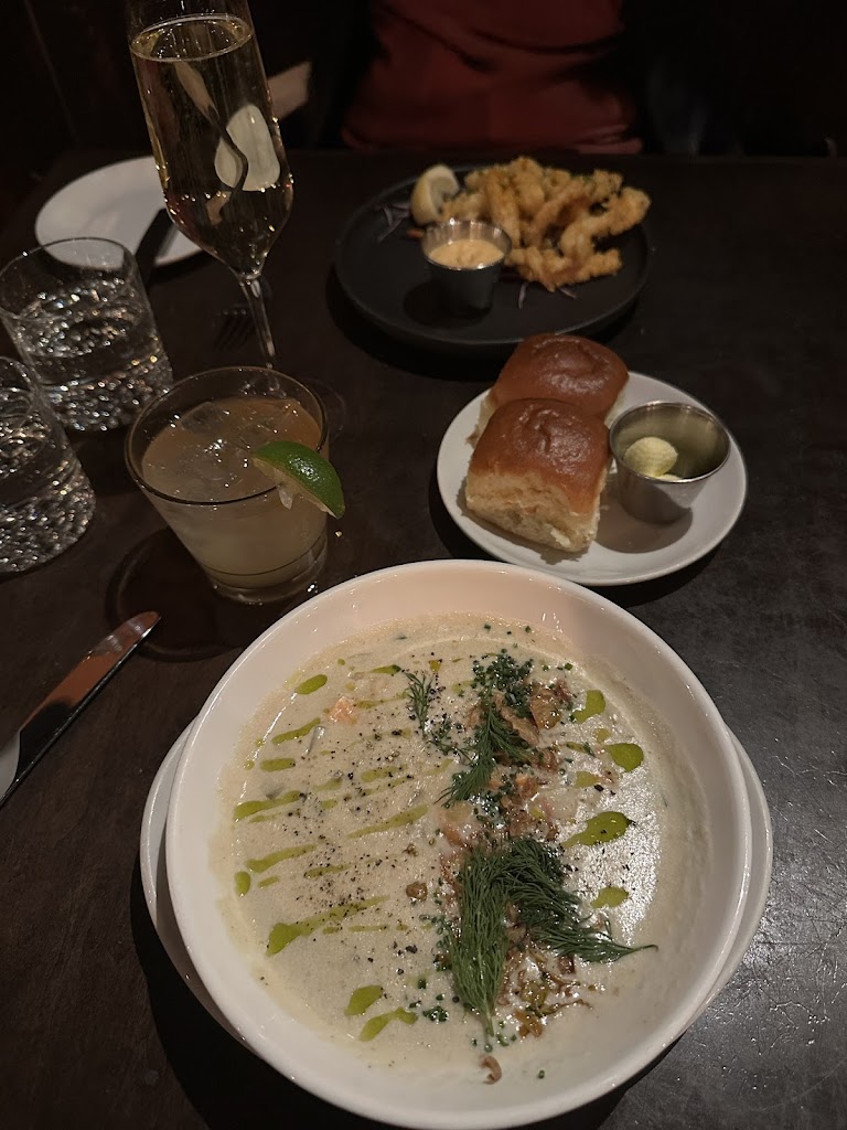 Cameron made our night dude! Met us with the energy we needed for our night and what a fun place. I have never tried Bouillabaisse, and am I ever glad I did! What an incredible punch in the flavors. We enjoyed the fresh buns and the toasts but filled too much for what was to be our fav carrot cake. Tiffany took over from Cam our man and made us feel equally as special. We meet lots of people and found the staff experience, including the lovely lady who sat us, to be among the best weve met.