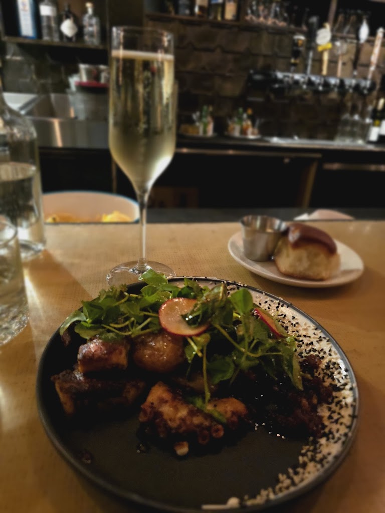 Everything about out dinner. Oysters, wine, calamari, ceasar salad, octopus and chorizo, horseraddish, mignonette - just to name a few. Thank you Kristeen amazing seating