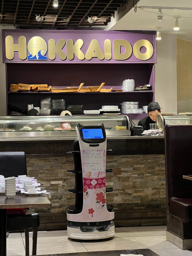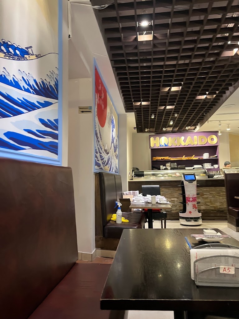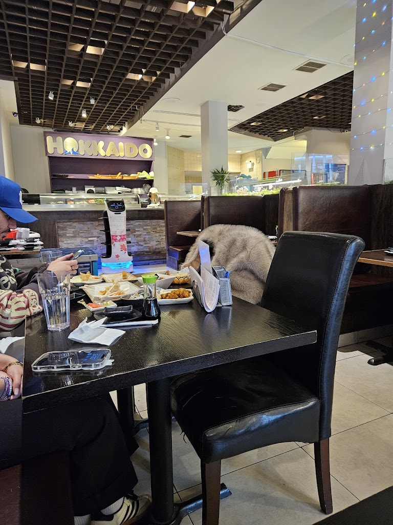 Hokkaido sushi has definitely become a staple for me, used to go there every week or so but now that I live far away it's even more appreciated ! The spicy crispy rolls, teriyaki chicken, squid balls and tempura are some of our favorites, it leaves us always wanting more ! And what to say about the mouthwatering bubbletea and new desserts ! I just wish they implemented more items from dinner menu to lunch menu and sometimes they don't bring everything on the sheet so we end up having to order again or just not get everything. But that's okay because we just order other things and have an excuse to eat more and discover different dishes ! The little robot kitty server is so cute too, our kid was so curious about it. Overall very pleasant experience everytime and I will continue coming as regularly as possible, everytime I'm in town !