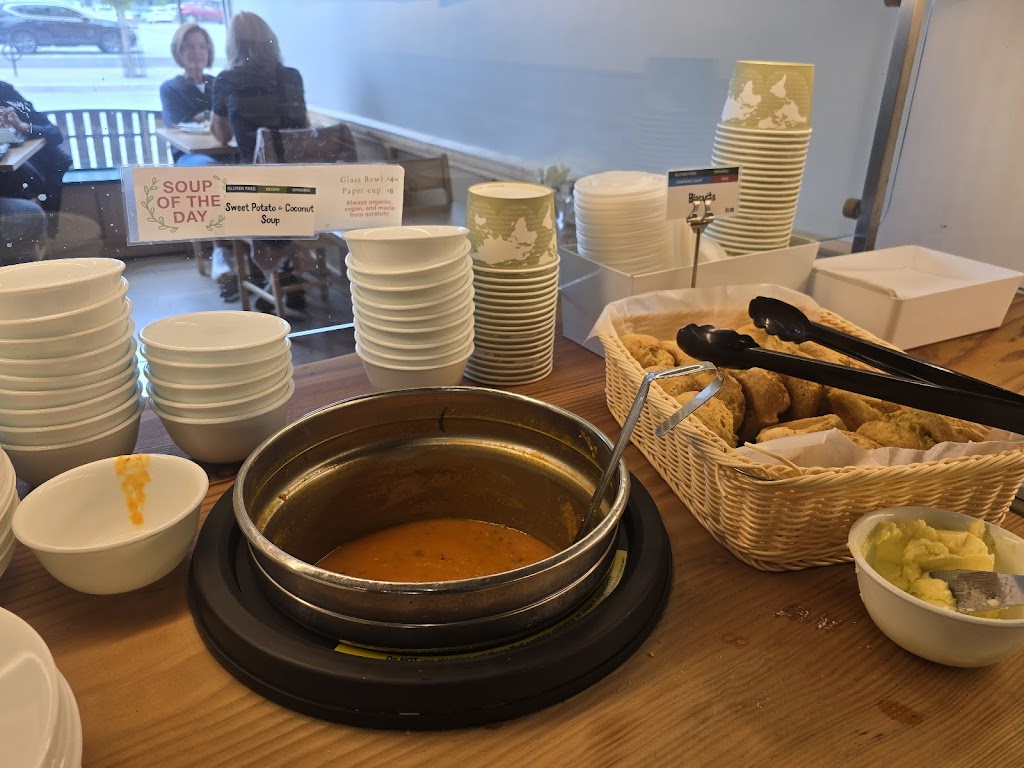 Even though it was about 25 years ago that I had been here last, I found the food to be as excellent as it was then, and they run a very tight ship because even tho it was absolutely packed with a waiting list, they made sure that everything was still perfectly made, presented on the buffet, and so yummy and fresh! The only drawback was the cost. I had less than half a bowl of soup, a gf biscuit, and small portions of broccoli slaw and beets and that came to over $20 with a tip. Then I had a chocolate mousse and a cup of triple berry compote and that came to almost $10. I would still highly recommend it here tho because imo, once every so often, its really worth spending the money to eat here