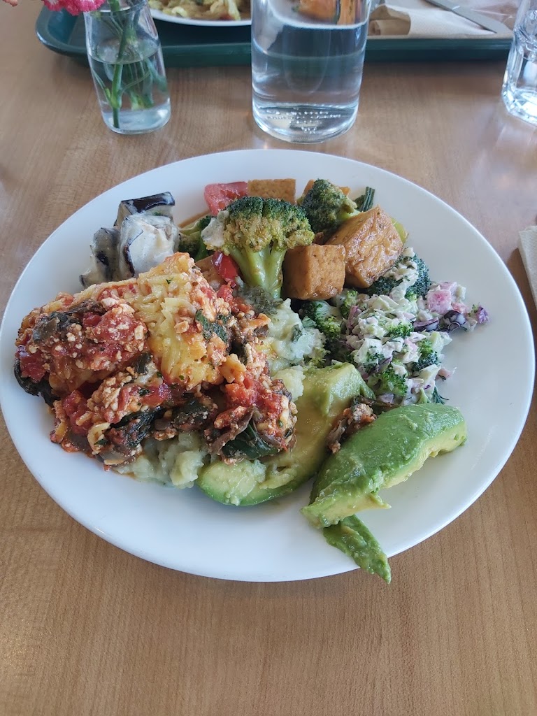 If you are vegetarian, or simply want to eat some wholesome, delicious, comforting food, THIS IS THE PLACE FOR YOU. From their soups, to their salads, entrees, and finally desserts, everything is fresh and delicious. And, because its self-serve, you take as much as you want of whatever you want, and find your seat. It can get busy, especially on special days, and brunches, so get there early. They also have freezers full of prepared food you can take home and unbaked goods you can take home to bake. Vegetarian options: All vegetarian