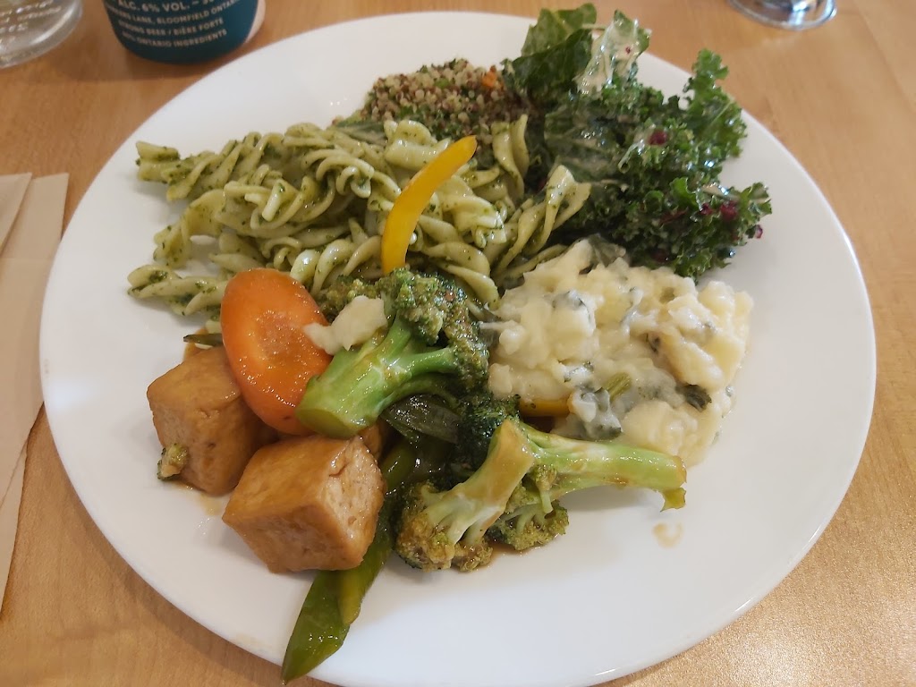 SOOOOOO good omg You need to be trying everything here or you are doing it WRONG. Standouts: AVOCADO SALAD!!! Pesto pasta Mashed potatoes n kale Asian style veg stirfry A full bowl of the cashewcream Peanut butter choco pie