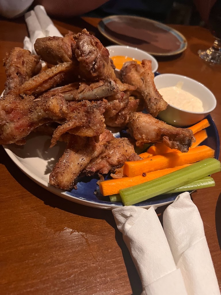 They were out of wings. So my wife got the rib platter, both corn ribs and Korean short ribs. The corn ribs were odd, kind of a toned down Mexican street corn. The Korean short ribs were way underdone (medium rare) which made them difficult to cut with a knife and even harder to chew. Her side salad was way overdressed; first bite was all vinegar. I had the Southern smoked poutine. It was passable, had a hint of smoke and totally lacked any seasoning. But the brown ale was good.