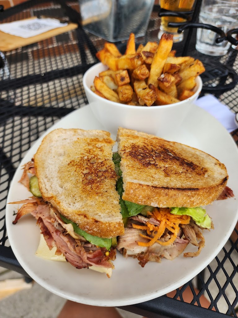 This is an amazing Brewery and Restaurant experience, a must do! We discovered this fun spot in August 2022 with friends for lunch along the beautiful River in Owen Sound. VERY friendly and knowledgeable staff that knew their lunch menu and beer selections well. Their beer was simply excellent on a hot day! We enjoyed the sour rhubarb beer (middle beer in the picture below). Their smoked chicken sandwich and their homemade fries were just so tasty! The best pub fries we can say we have ever had, large wedge cuts and with a crispy coating! They smoke their meats on location and the brisket was so tender. The corn bread is a great appetizer too. They offer vegan friendly lunch options too. Excellent lunch from start to finish, so great that we made another repeat lunch the next day together! Thanks again everyone for our outstanding brewery restaurant experience, we left stuffed! Look forward to seeing you again the next time we are in Owen Sound!