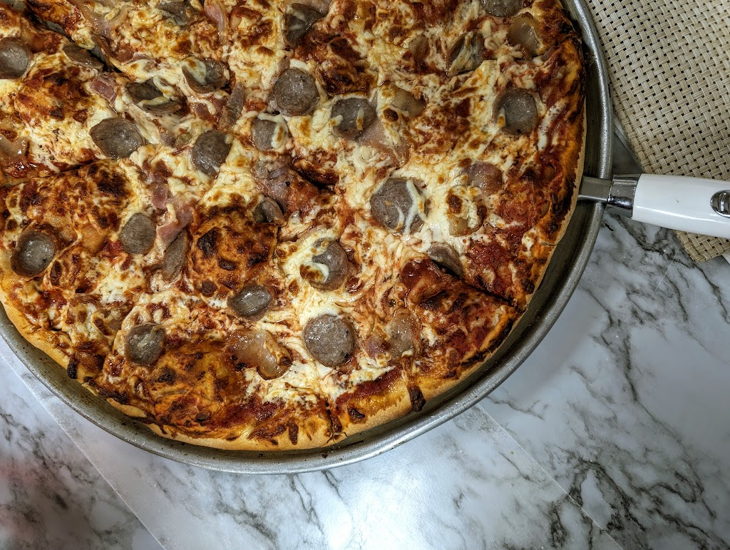 Family run pizza place. Thank you for dinner. The pizza sizes were larger than expected and the toppings were plentiful.
