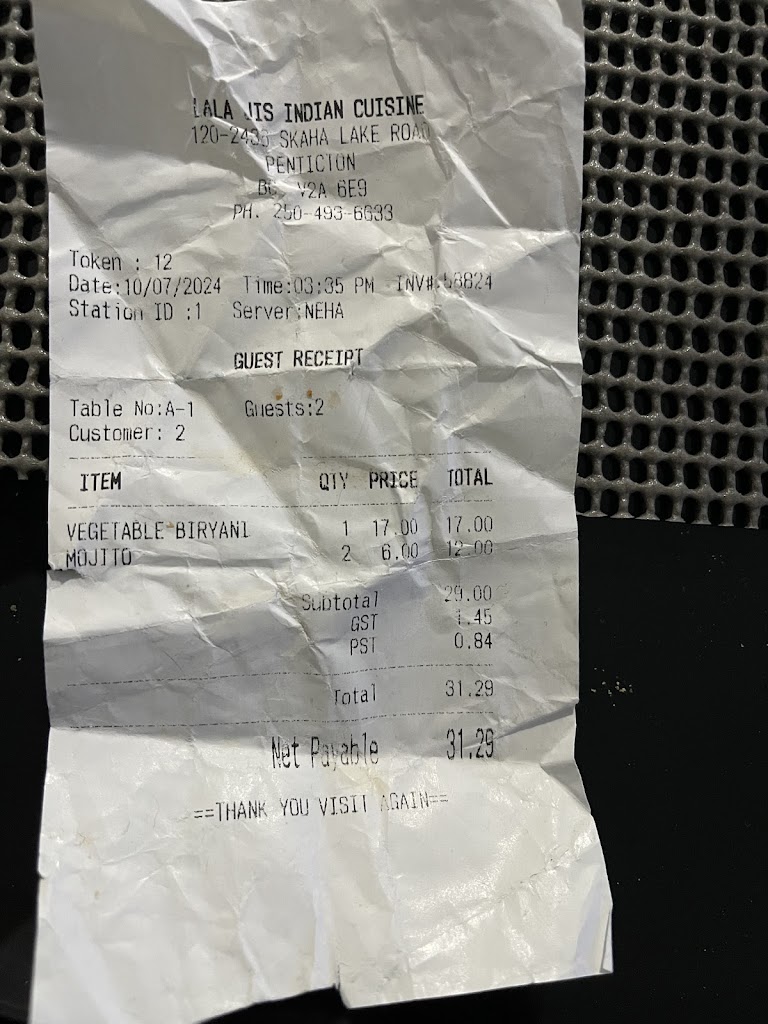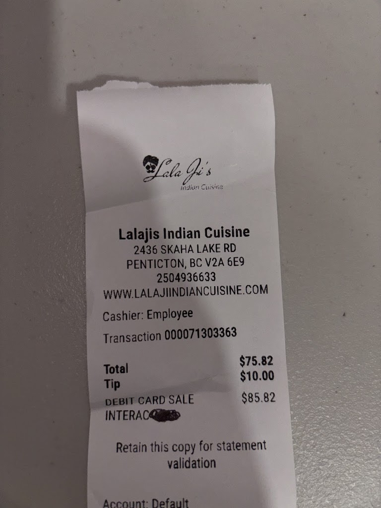 We were looking for a halal place but since there aren t any options in Penticton, we decided to get a vegetarian meal at Lala Ji s. We ordered bhalla chaat, pao bhaji, amritsari kulcha and potato stuffed naan. Unbelievable taste and amazing portion sizes. Enjoyed the channas, chutney and raita with everything. Young lady serving us was very friendly and courteous. Highly recommend this place if you are in the area and are seeking authentic Punjabi food!