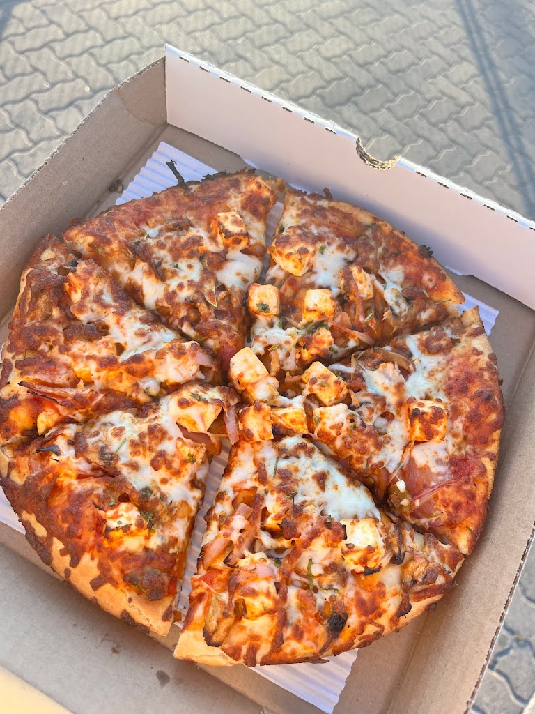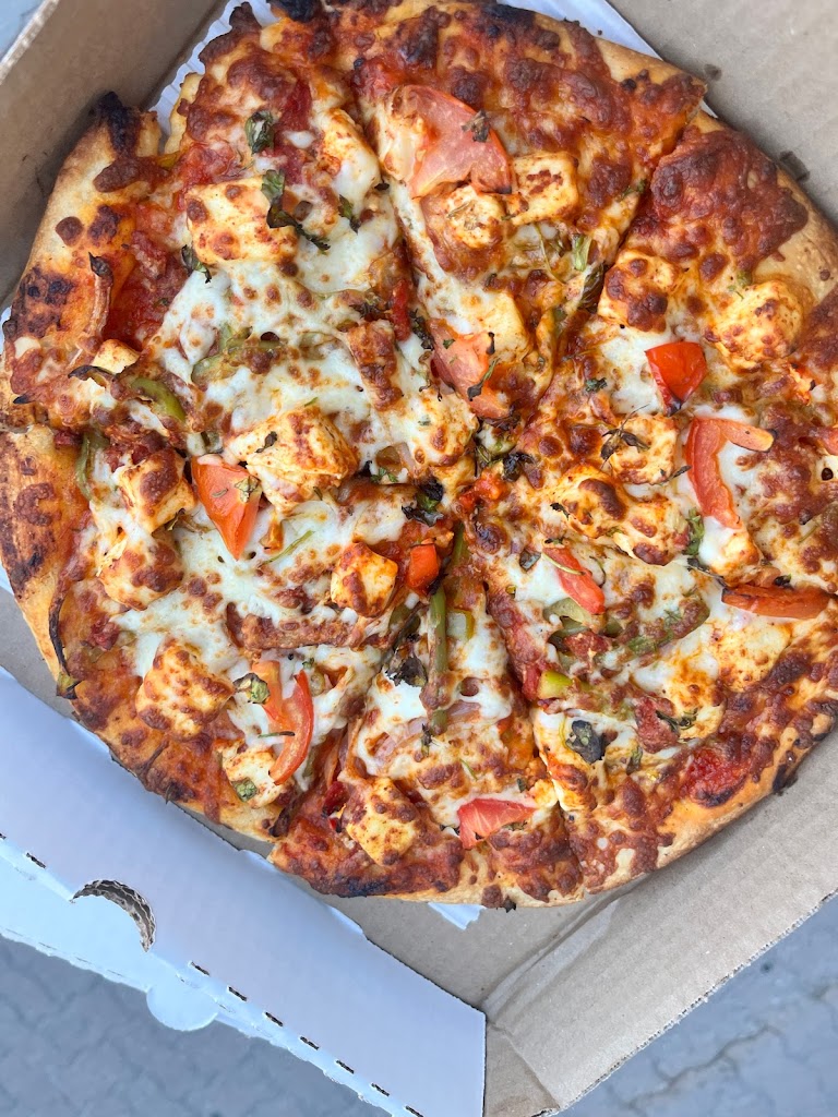 really tasty. the crust is perfect. loaded with toppings and very cheap prices. never had indian sauces or paneer on pizza before so it was a unique experience. 10/10 !!