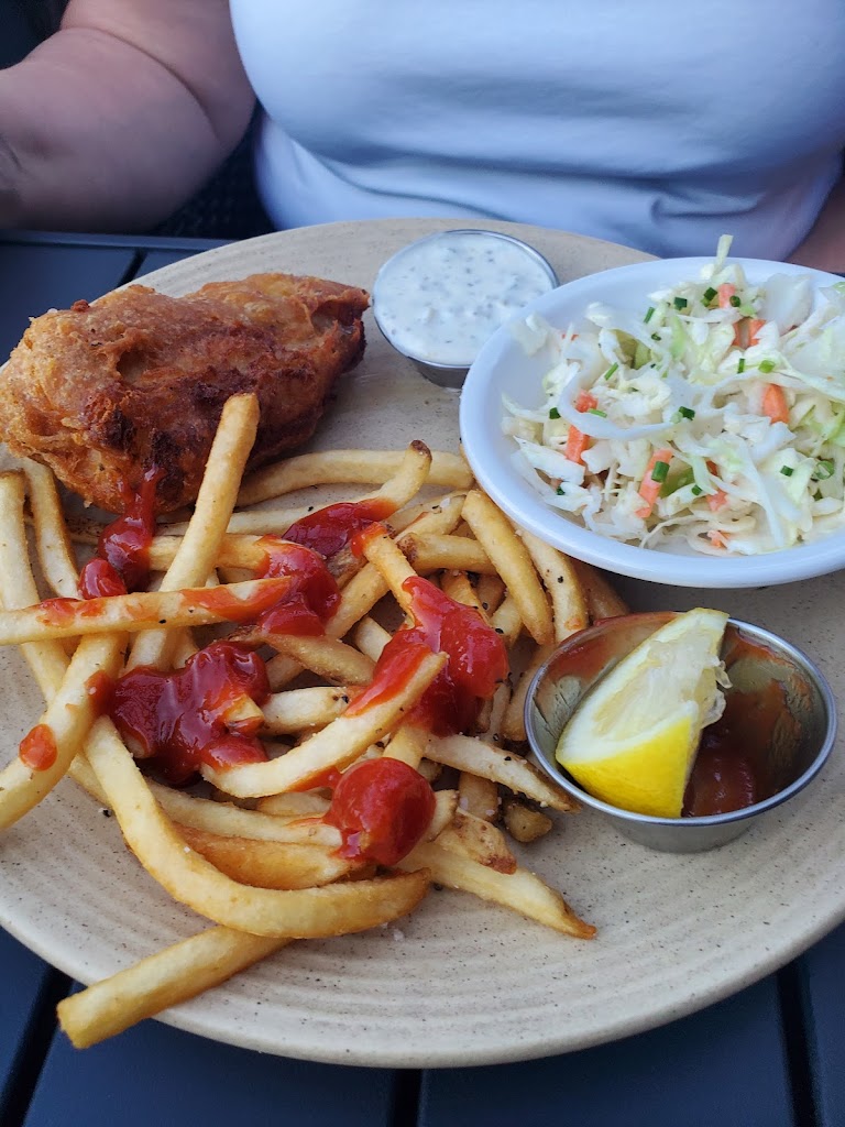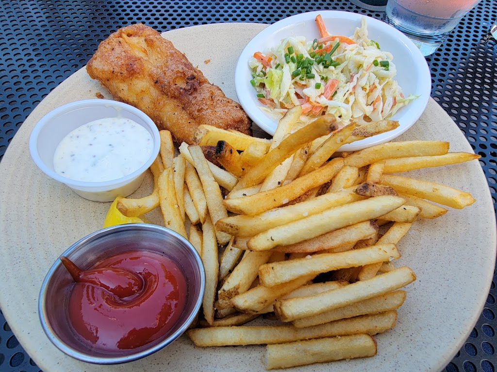 Decent fish and chips, solid tartar sauce, the fries were solid. It was very busy because of Ironman triathlon