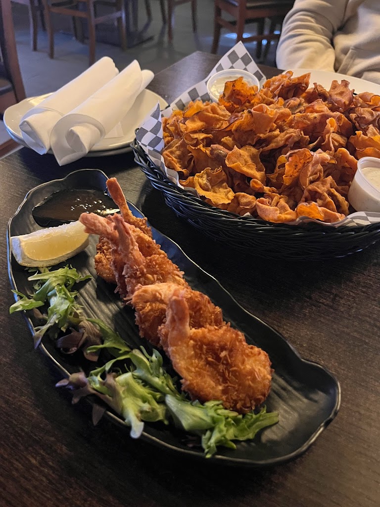 Lunch at Kettle Drums was such a delightful experience, especially since we went during quieter hours. 🌟The ambiance, with its warm and spacious interior, was just lovely, and the staff was incredibly friendly, checking on us occasionally. I adored the attention to detail, like using graters as part of the ceiling decor – those little touches make a place unique! 🥘 Now, onto the food! While the menu didn't offer a wide variety, there were more items like steak after 3 pm. We indulged in some Sweet Potato Fries and Shrimp. The fries were presented beautifully – crunchy, flavorful, and a generous portion for one person. They were worth every penny! As for the shrimp, it didn't quite hit the mark in terms of both price and size, but it was still decent. 🍹 For drinks, I opted for the Raspberry concoction, which was pretty good; I'd order it again. My friend tried the Lavender, and although I didn't taste it myself, it looked and sounded delightful. A big shoutout to my friend Greatness for sharing your food and letting me snap some pictures! It made the whole experience even more enjoyable. 😁