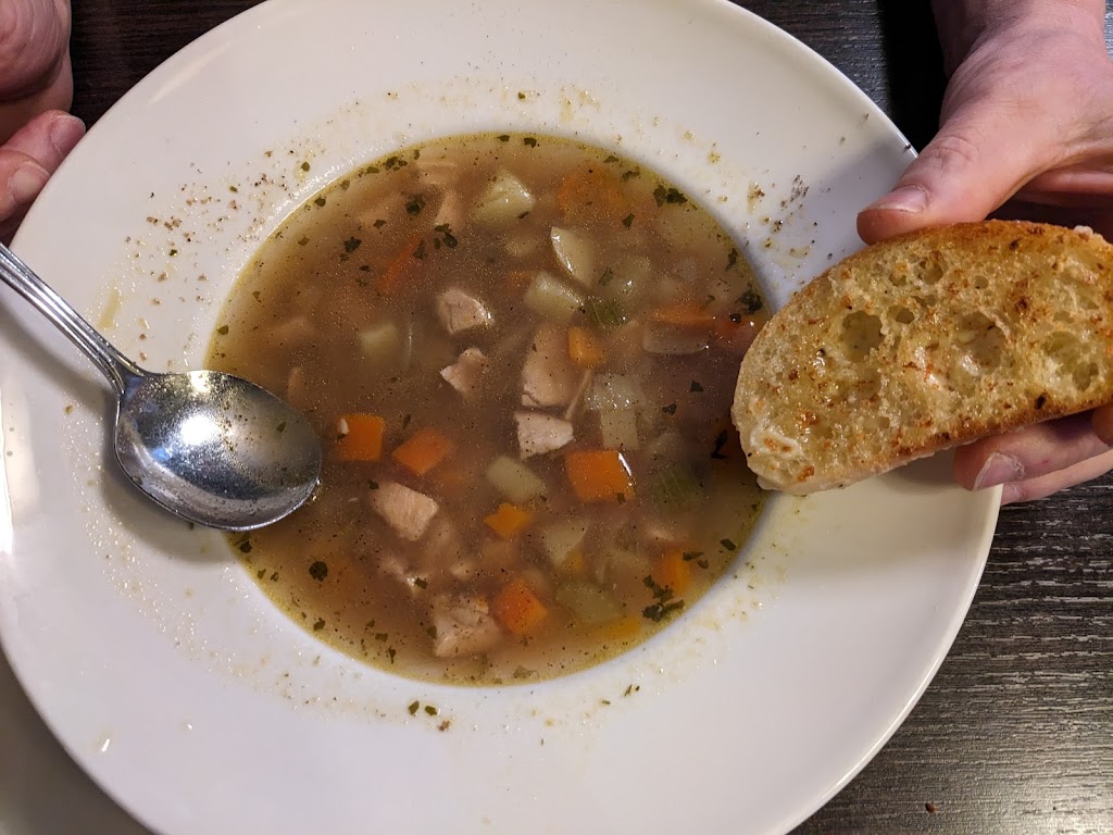 Massive bummer. Was there for an hour and a half, and all I ate were 3 bland breadsticks and a glass of rosé. The meals we ordered came about 50 minutes after ordering. My partners was ok. Mine was wrong: steak was well done, not medium, cold vegetables, cold plate. I sent it back and hoped I could order the chowder instead - no chowder available. I asked what could be prepared quickly and the server suggested cheese dip. It was pretty bland, and when youve been looking forward to a steak dinner a few flabby breadsticks doesnt quite cut it, yknow? Bummed because my partner and I rarely get a date night. Im going home to eat a bowl of cereal. Harumph.